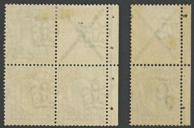 a block of 4 */**, also ½d yellowish green booklet stamp Imperial Crown Watermark Inverted vertical pair with St Andrew's Cross label SG218Wi, plus ½d yellowish green booklet stamp horizontal pair with St Andrew's Cross label tied by Oxford "AU