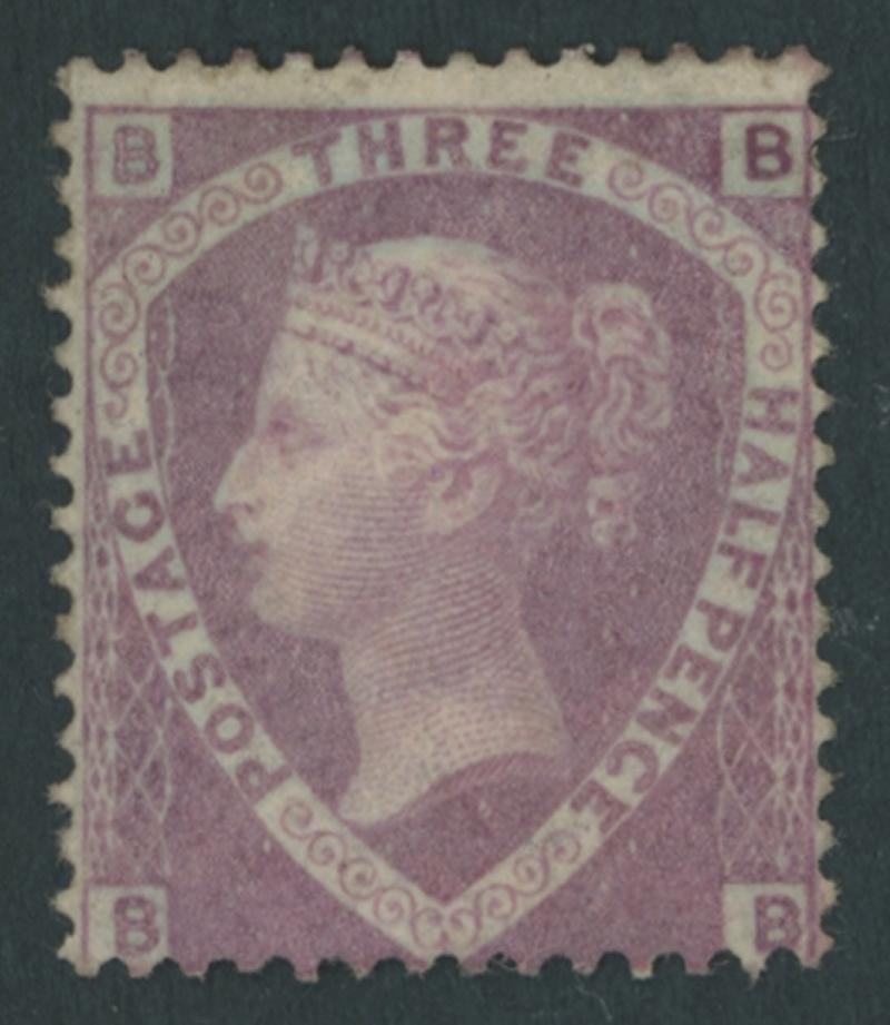 1870-79 QV Line-Engraved New Values Shield 1½d rosy mauve on Blued Paper SG 53a [BB], characteristic wayward centring, unused with