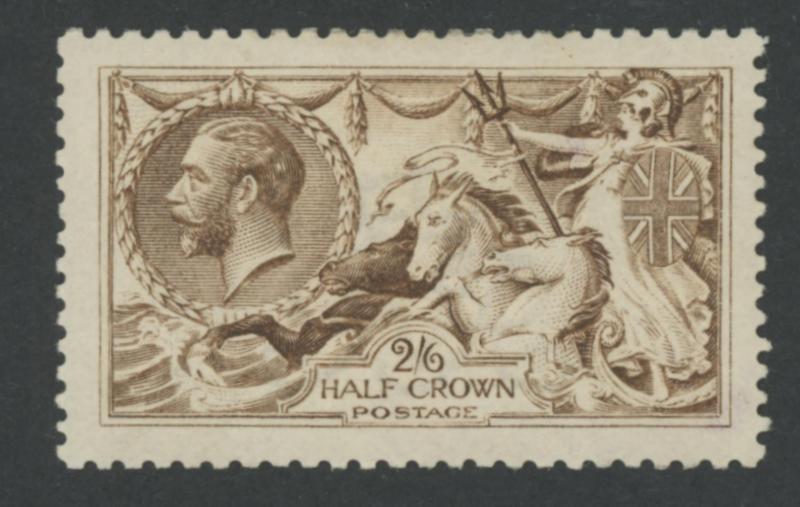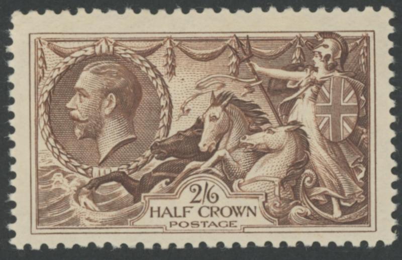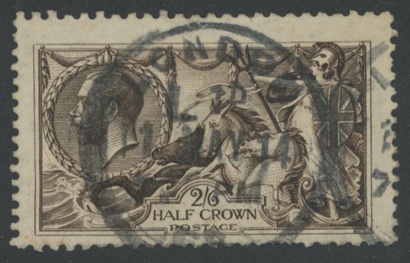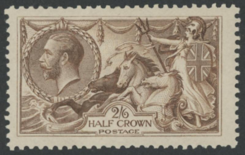 1913-19 Seahorses Waterlow Printings 2/6d very deep sepia-brown SG 399 shade Spec N63(1), a few short perfs & tiny tear at the