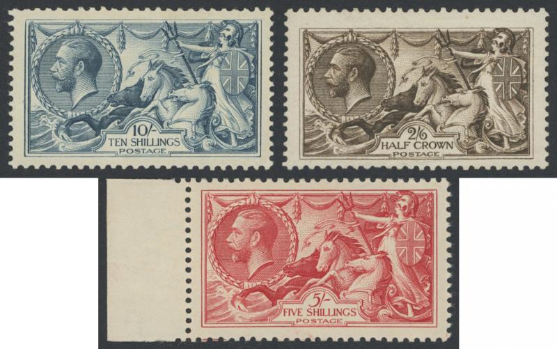 redistributed gum), Bradbury Wilkinson Printings 2/6d & 10/- (both very well-centred), and Re-Engraved 5/- marginal example, Cat £1850.