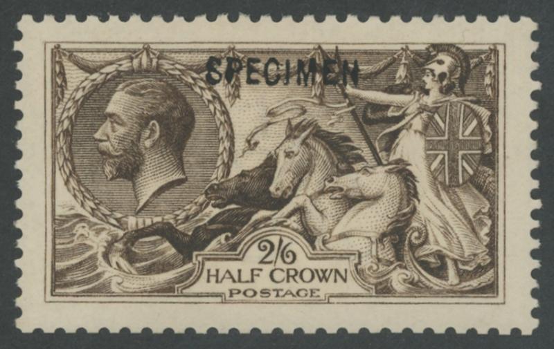 1913 KGV Seahorses Waterlow Printings 2/6d deep sepia-brown with sans-serif 'SPECIMEN' overprint Type 26 SG 399s, fresh colour,