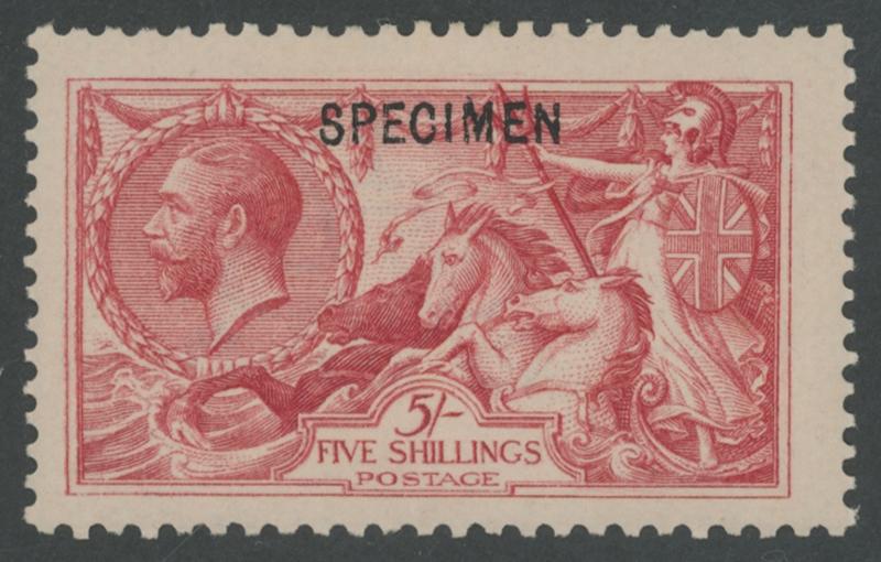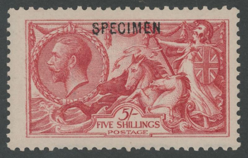 1913 KGV Seahorses Waterlow Printings 5/- rose-carmine with sans-serif 'SPECIMEN' overprint Type 26 SG 401s, fresh colour, very