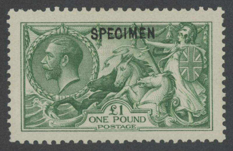 1913 KGV Seahorses Waterlow Printings £1 green with sans-serif 'SPECIMEN' overprint Type 26 SG 403s, fresh colour, very