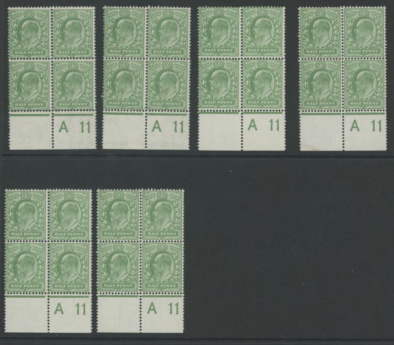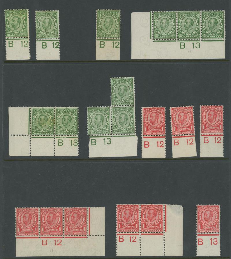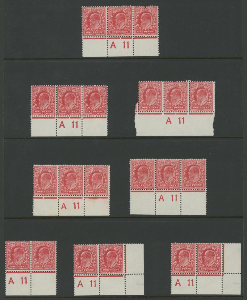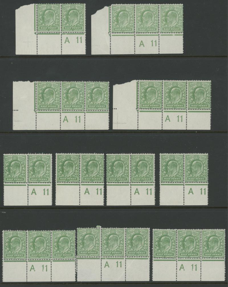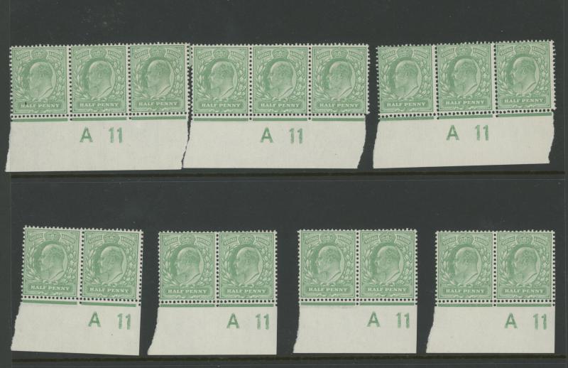 1911 KEVII Definitives Harrison Printings ½d green & 1d red Control Number 'A11' unmounted pairs, blocks & strips accumulation