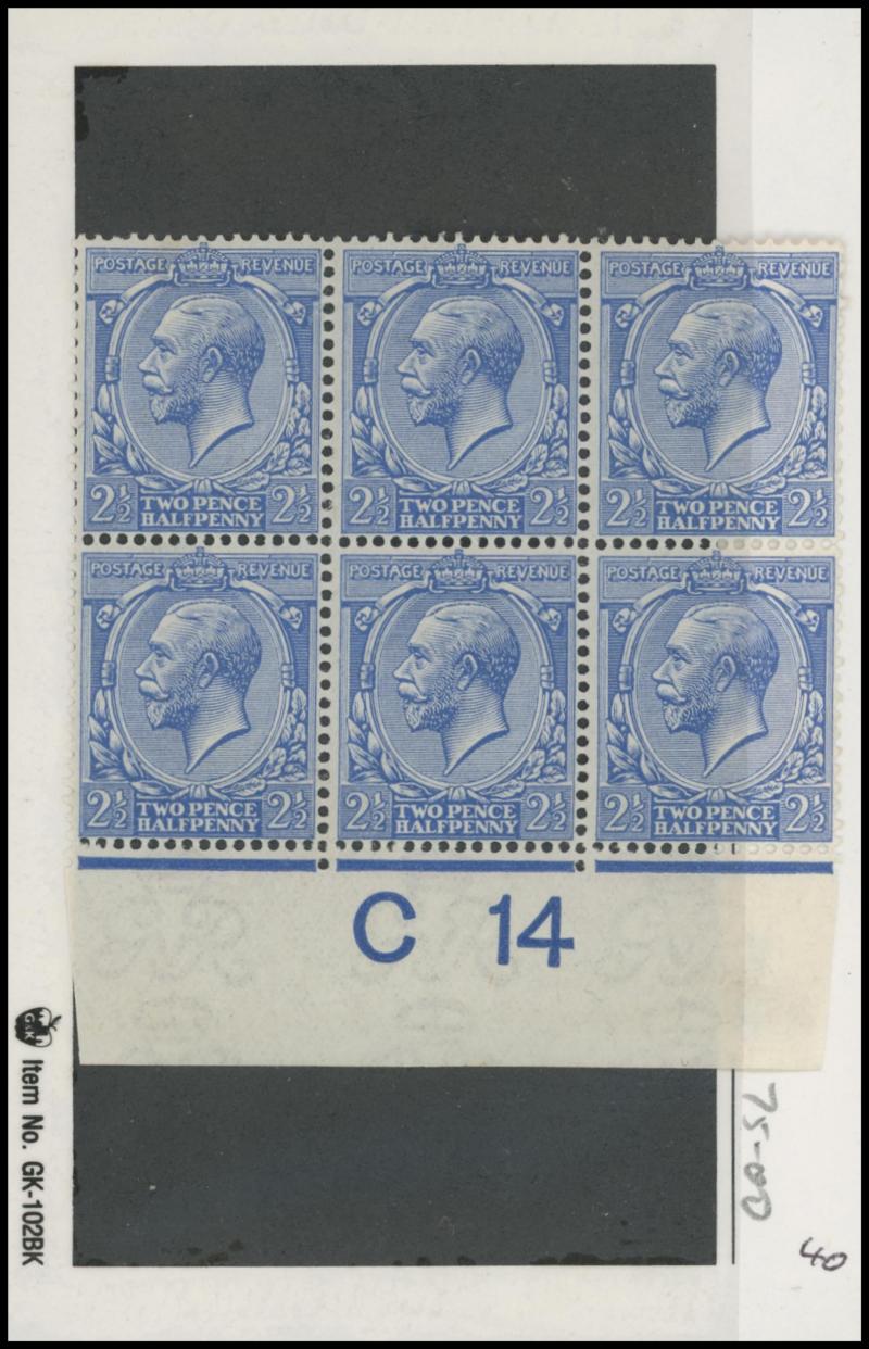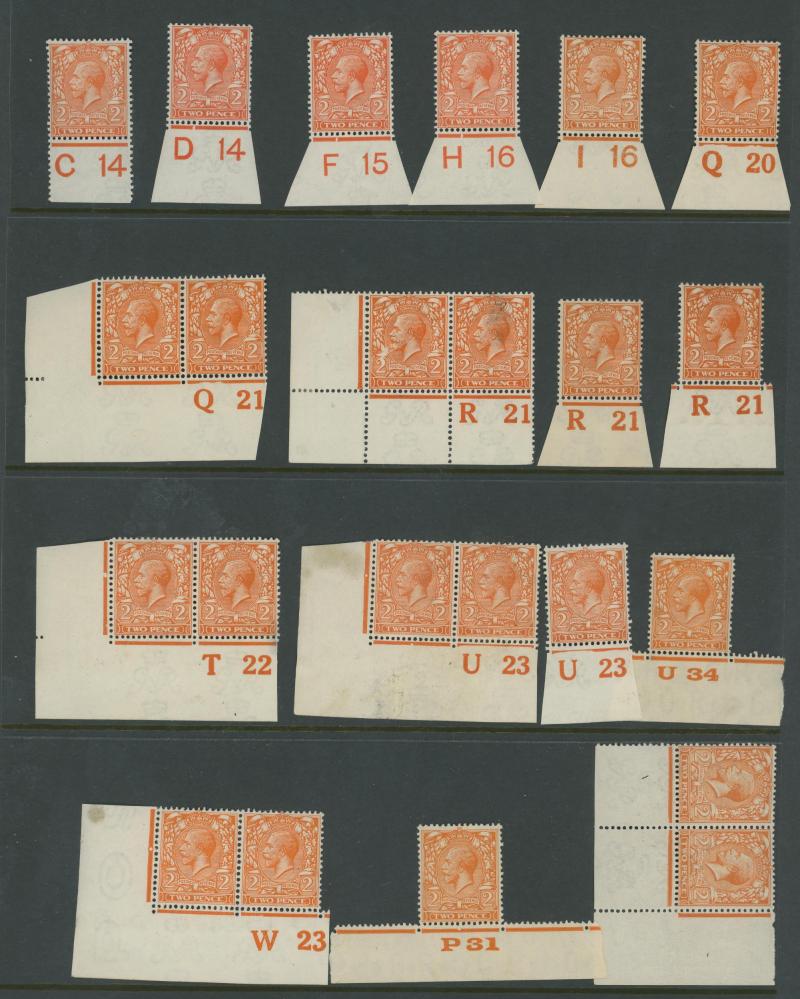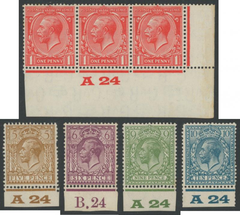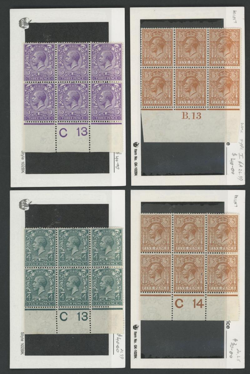 1924 6d purple block of 6 'D 38' and 1913 10d turquoise-blue block of 6 'C. 13', generally fine to very fine with some being unmounted. Opportunity for specialists.