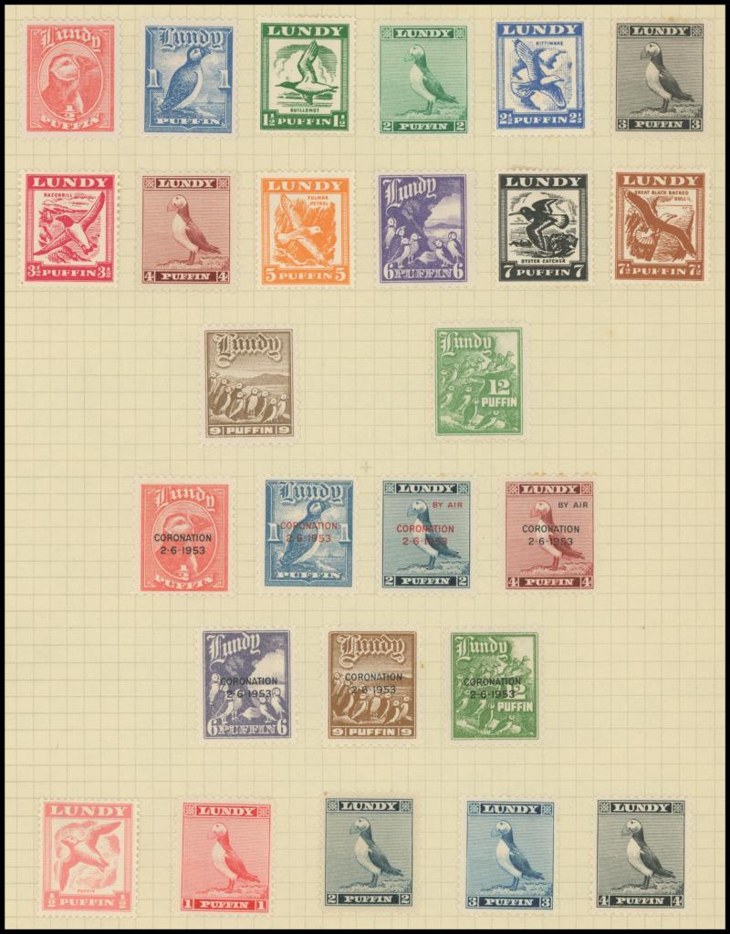 pocket calendar, KGVI Coronation De La Rue sheetlets of 12 in six different colours (unmounted), various Philatelic Congresses, Herm & Lundy selection including Lundy 2d on reverse of 1964 apparently commercial cover, 1936 'poached egg' coil-testers