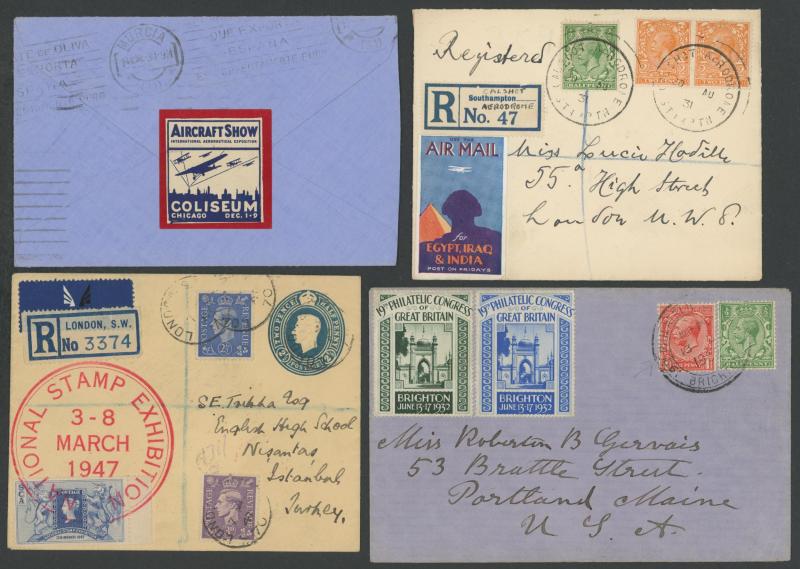 scarce 'LONDON/FS24 - BUY/BRITISH/MADE/GOODS' datestamp, KGV 2½d complete parcel label for Carters Tested Seeds, KGVI 5½d+1d Registration Envelope, etc, some folded but generally fine to very fine; also KGV 6d & 1/- Postal Orders (both rather worn).