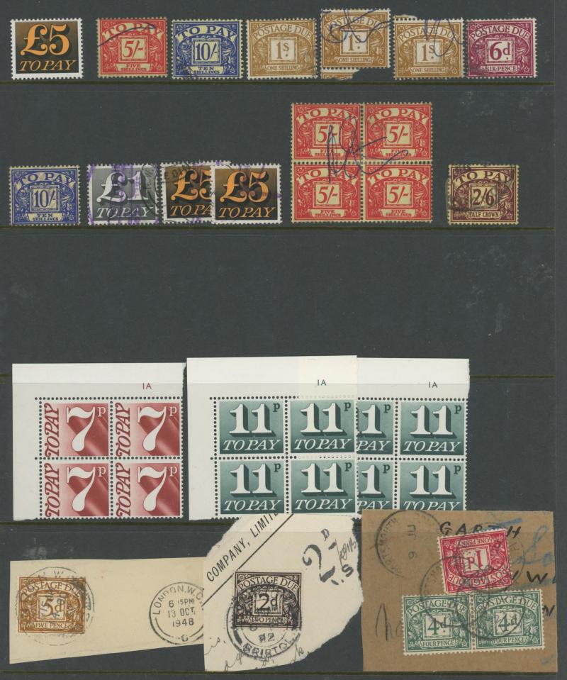 POSTAGE DUES: Untidy array completely unchecked by us but noted as including 'E 8 R' mint set to 1/- & unmounted set to 2/6d with