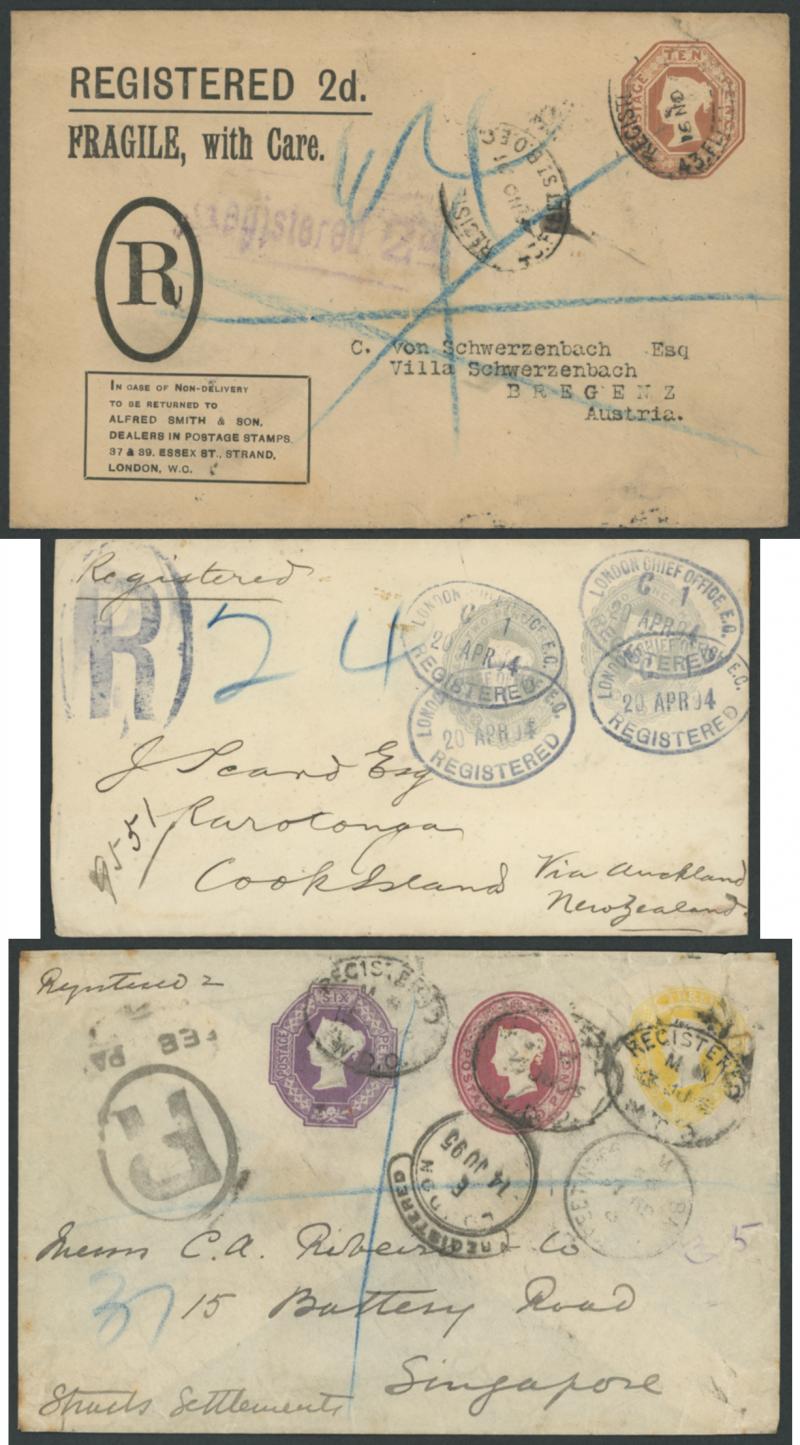 Queen Victoria Stamped To Order Envelopes that have been registered & Registration Envelopes with embossings to 1/-and many with