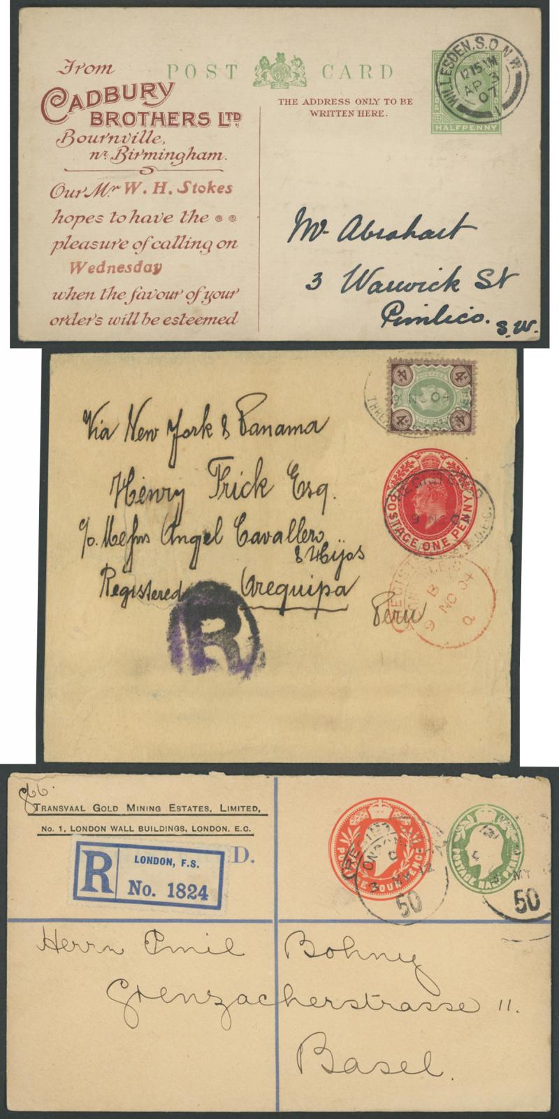 stationery cutouts, etc; destinations including Argentina x2, Australia (scarce 3d Postal Card), Brazil, 1894 to "Bulgaria/Turkey" (independent from 1908), Nicaragua, Norway, Peru and Turkey; etc, condition variable but generally fine to very fine.