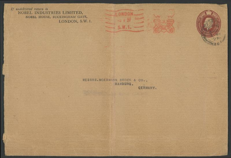 denominations to 6d & several with multiple embossings, some very attractive advertising, mostly internal or to European countries but also to Turkey Australia & New Zealand, includes KGV ½d STO Wrapper for 'Daily Mail' with superb strike of the