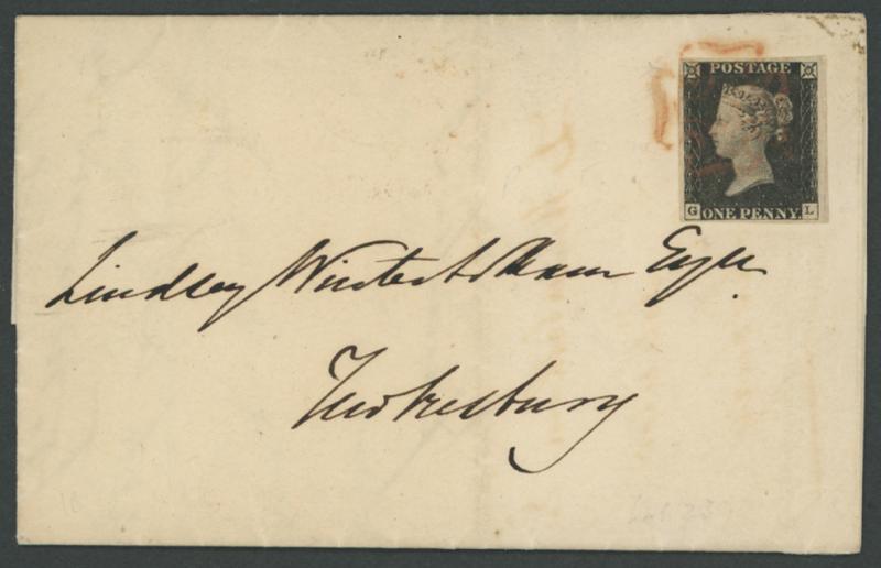 QV Line-Engraved Penny frankings including 1840 (Oct 5) with Penny Black (full margins), light Maltese Cross in red of 'GLOUCESTER'