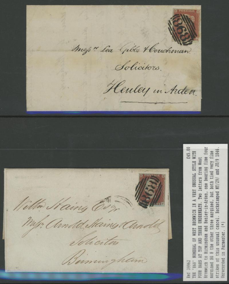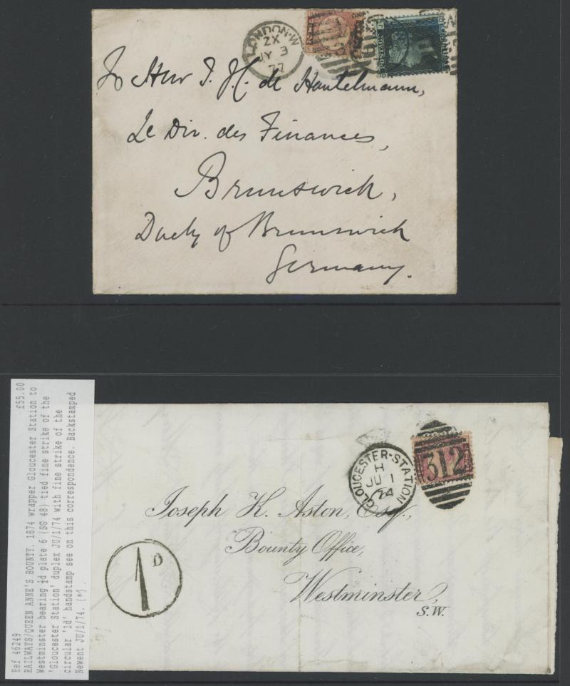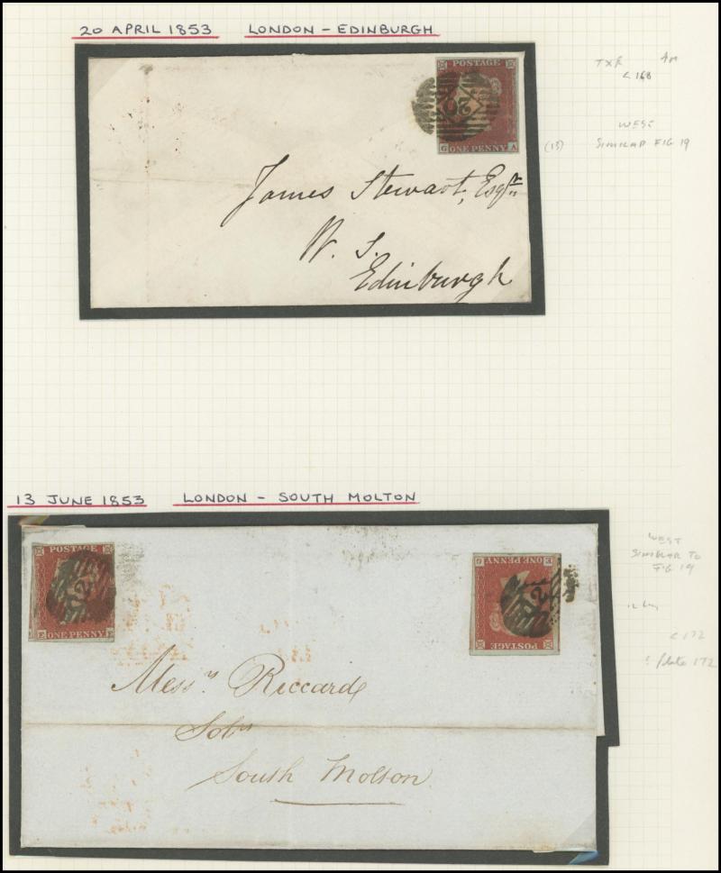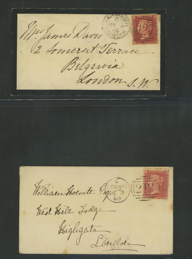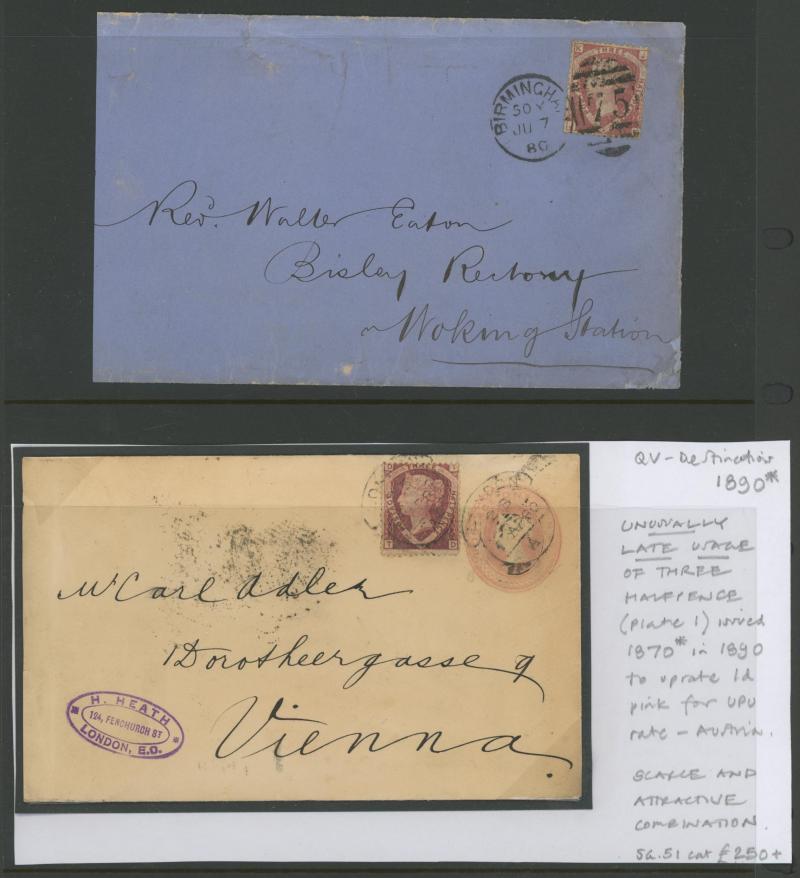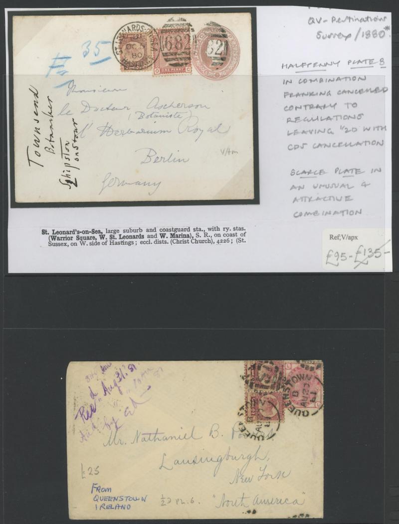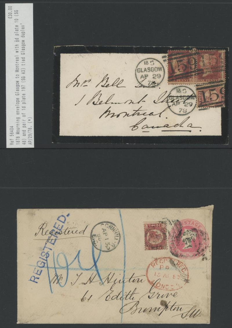 multiple frankings, lots of mourning envelopes, a few annotated minor varieties and no doubt others to be found, condition quite variable with some file folds & soiling but many are fine to very fine. [The illustration is above Lot 2262]
