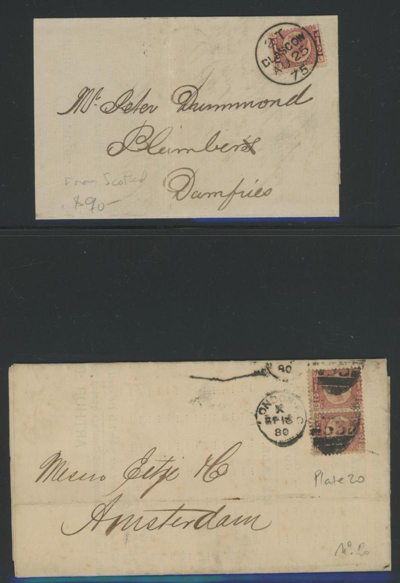 Counties Herald complete newspaper, 1880 Cardiff to Edinburgh with 'EDINH & CARSTAIRS SORTING TENDER' backstamp, multiple frankings including a number of pairs for the letter rate noted one Plate 20 pair plus 1875 to London with single & Letters 1d