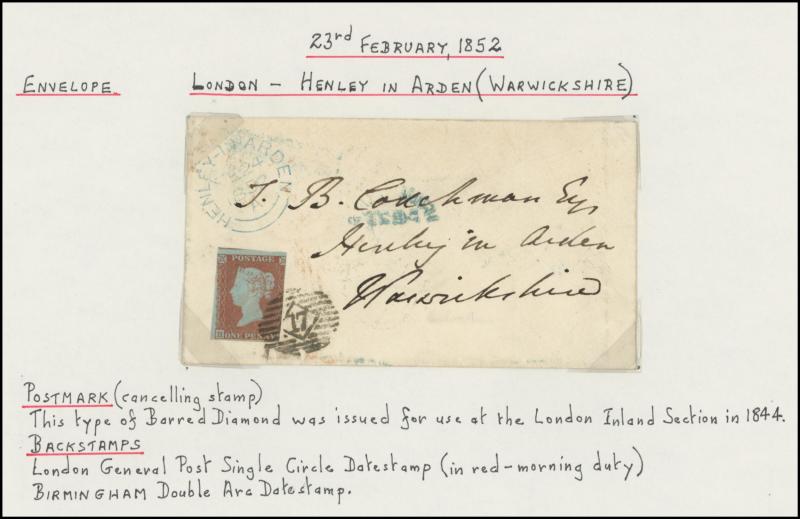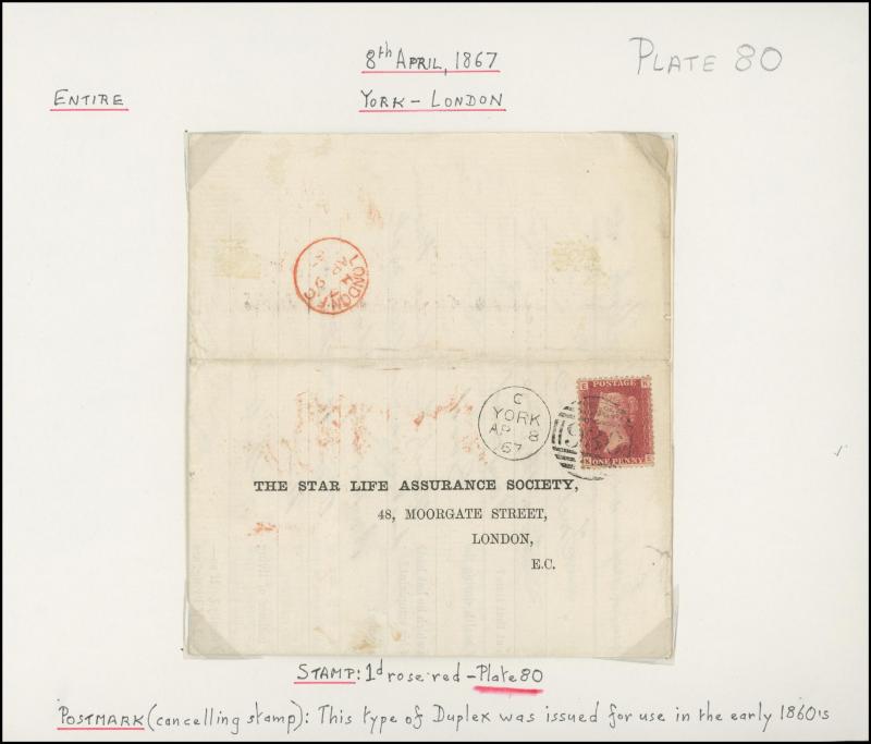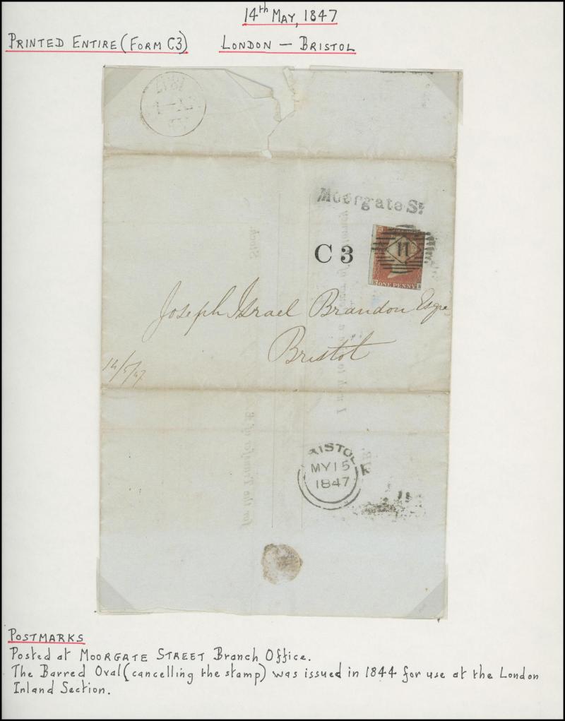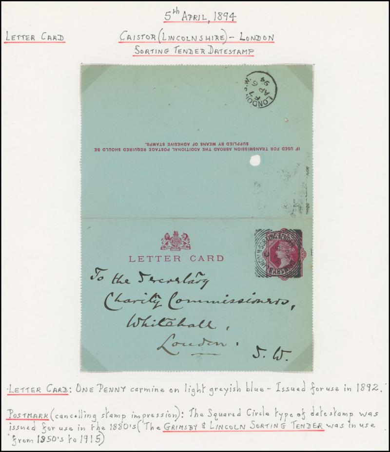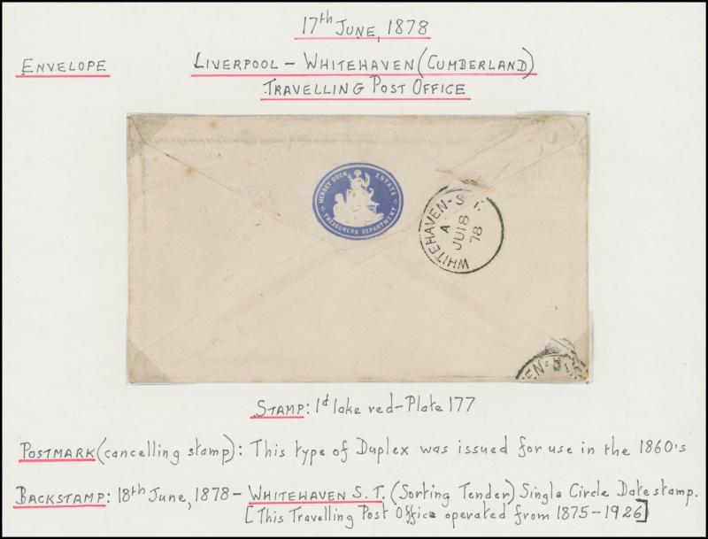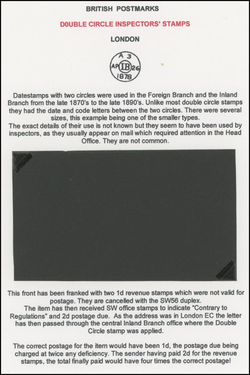 and London Inland Section Inspector Mark 'A12/AP/ I /21/1877' double-ring cds, 1878 'The Queen's (Westminster) Rifle Volunteers' postcard with London District 'EC/15' bars cancel, 1879 'Bankruptcy Act' notice used within Birmingham, 1880 on Midland