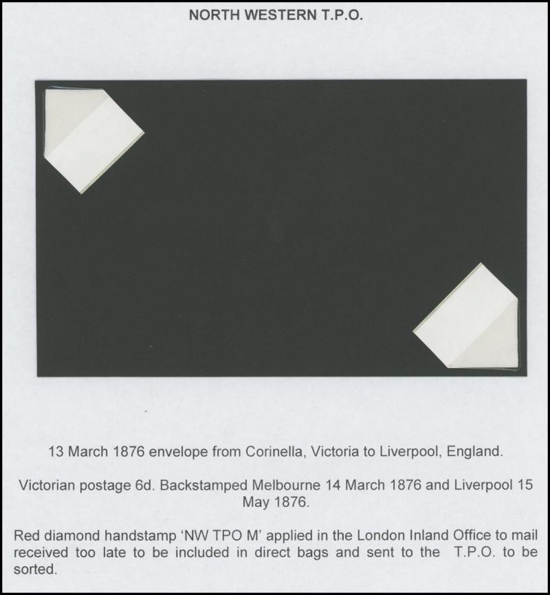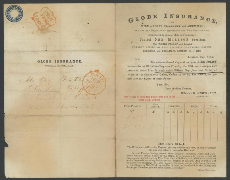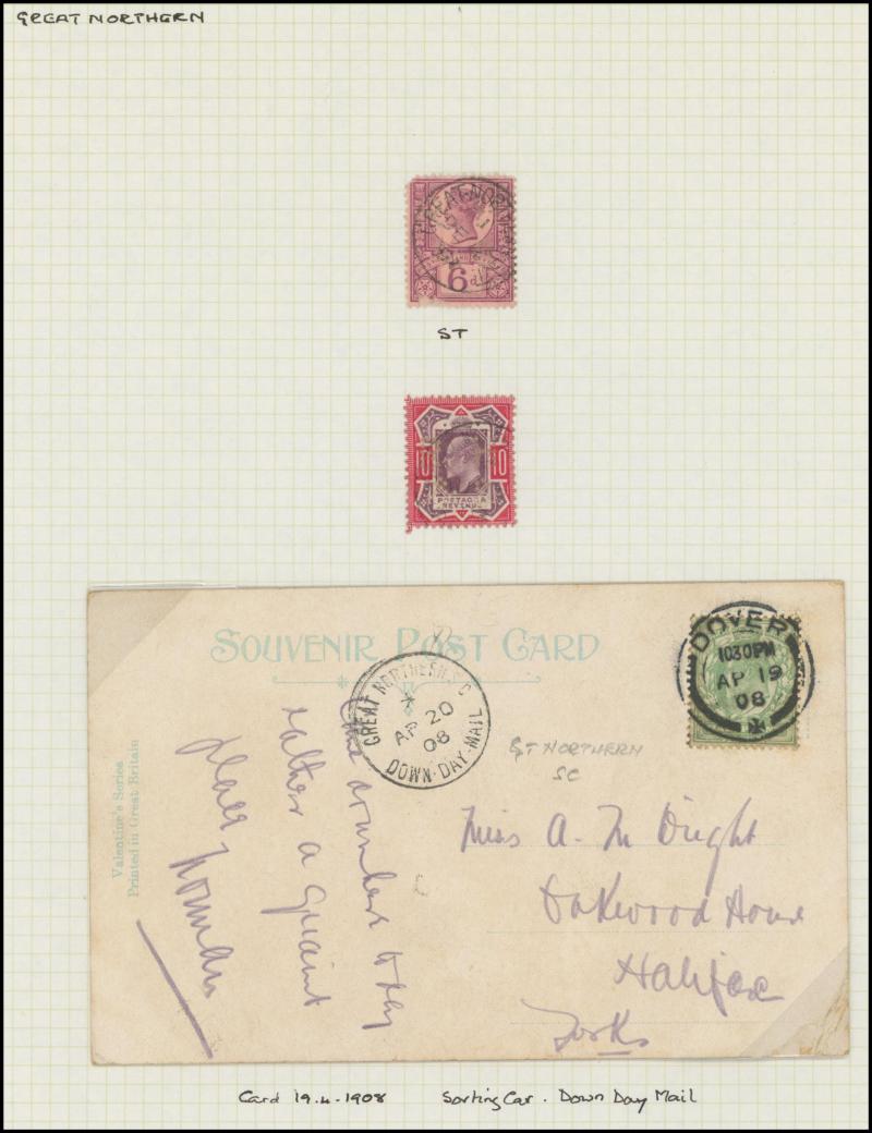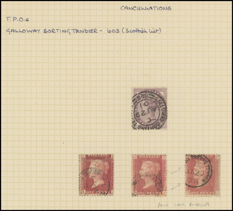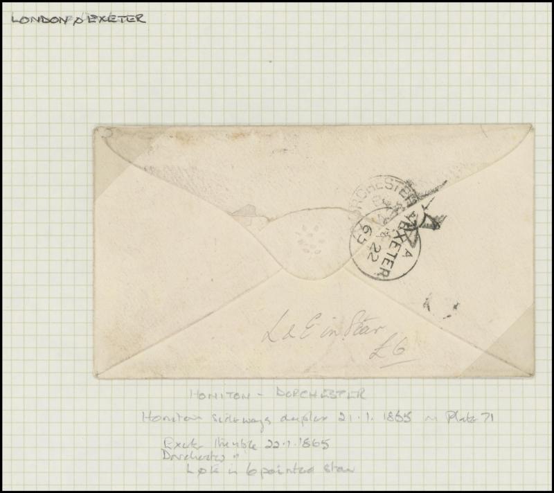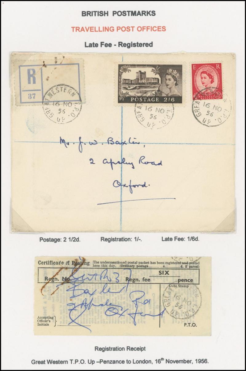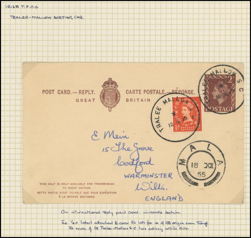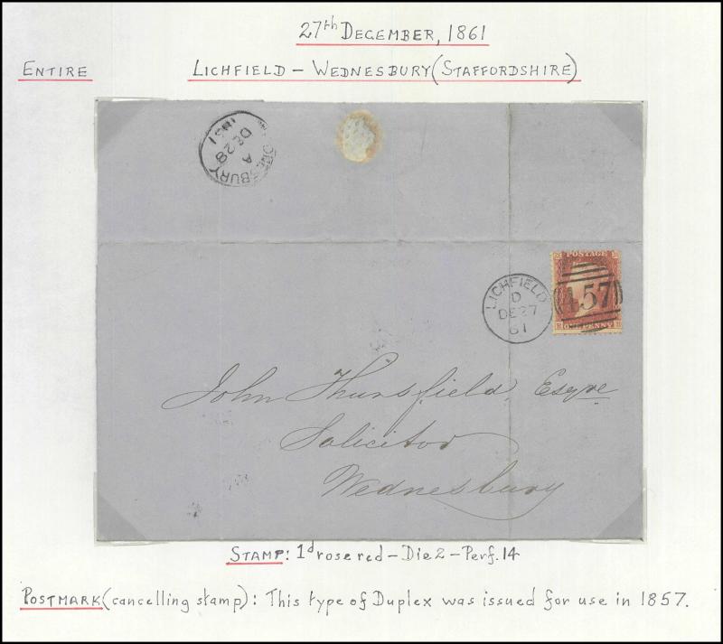 and other markings noted 'TOO LATE/LONDON' 1864 duplex, Ballisodare, Ireland very fine Numeral '458' with fine backstamp, Dublin 'POSTED SINCE 5PM/TnRECr/LAST NIGHT' backstamps on three 1856-57 envelopes, 'DUDLEY - 263' sideways duplex, Edinburgh
