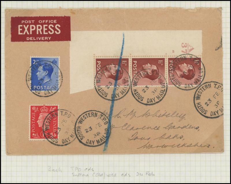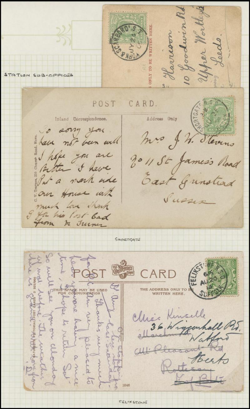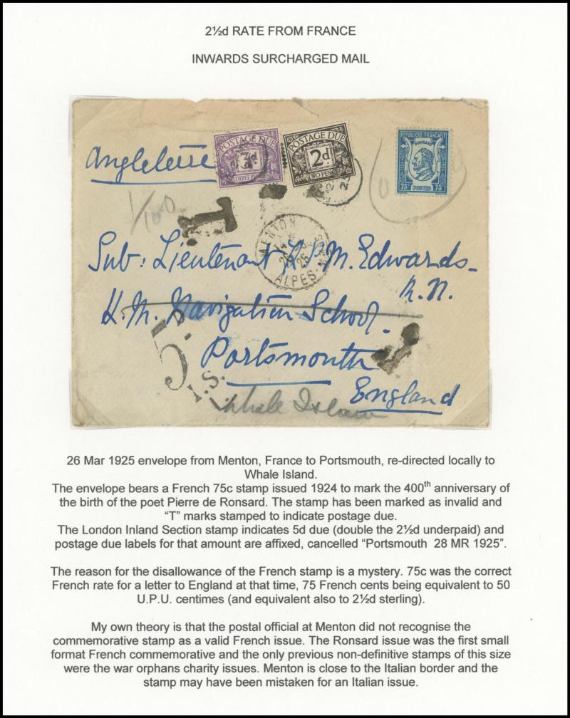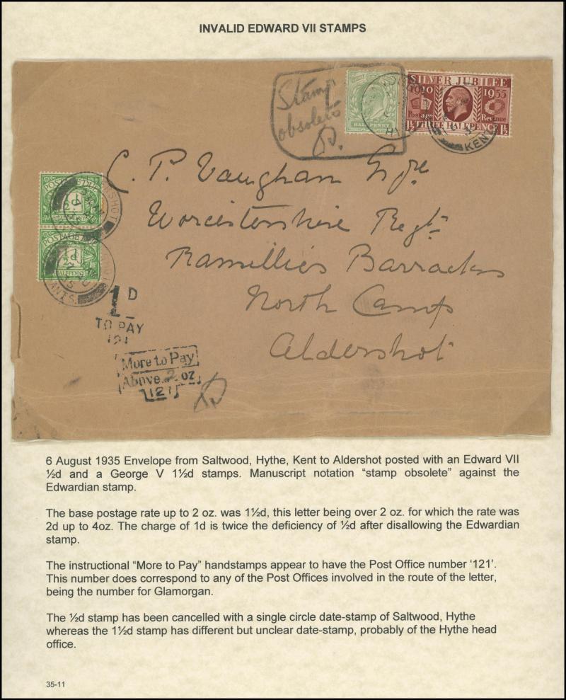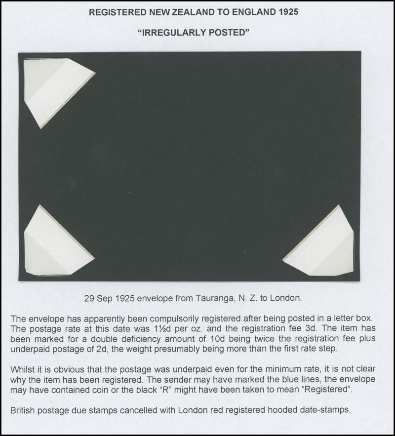 ½d rate with 'POSTED ON BOARD SHIP ABROAD' handstamp, 1925 London to Kent with ' ... POSTED TOO LATE FOR ½D RATE' handstamp and 'Please return the cover for the purposes of an Official Enquiry' label affixed, also inwards mail including Aden (with