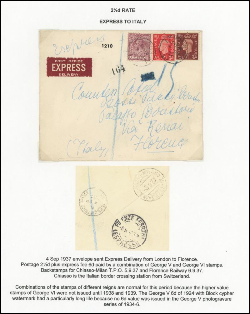 1868 6d lilac solo to Germany, 1869 4d vermilion plus Letters 1d pair to Germany with 'AUS ENGLAND PER AACHEN/FRANCO' transit, 1872 3d rose solo to the Netherlands, 1875 (July) to Italy "via France" with 4d vermilion solo paying interim rate, Large