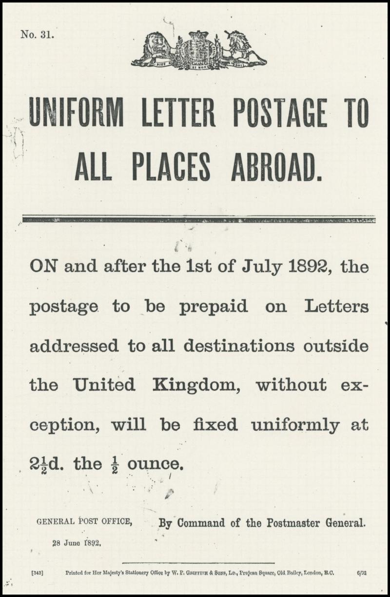 30c orange & black affixed, 1885 uprating Postal Card 1d brown to India with Bombay-Aden 'SEA/POST OFFICE' transit, 1889 to Argentina with 1d x4, 1890 solo to France for printed matter rate, 1898 solo to Sweden endorsed "Sample without Value", 1898