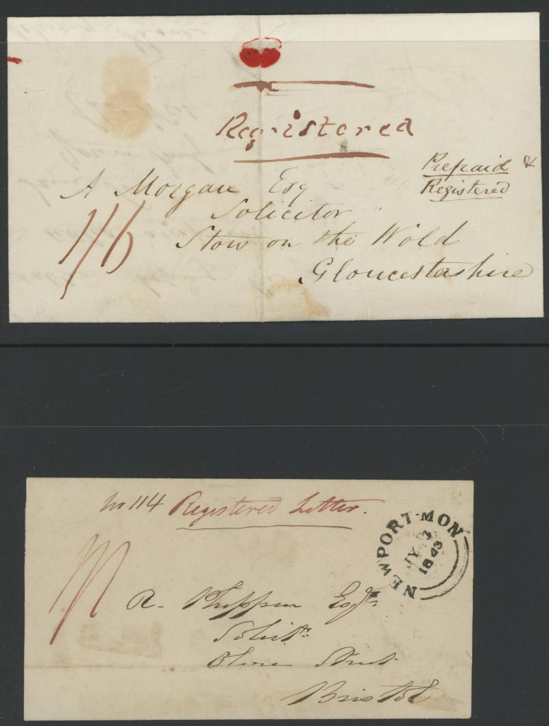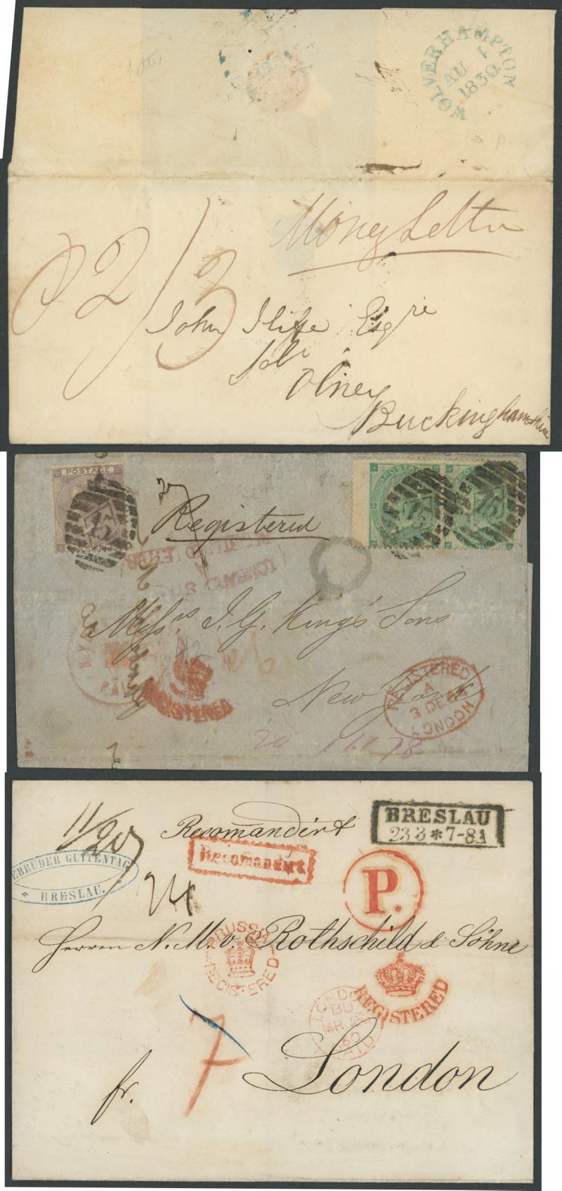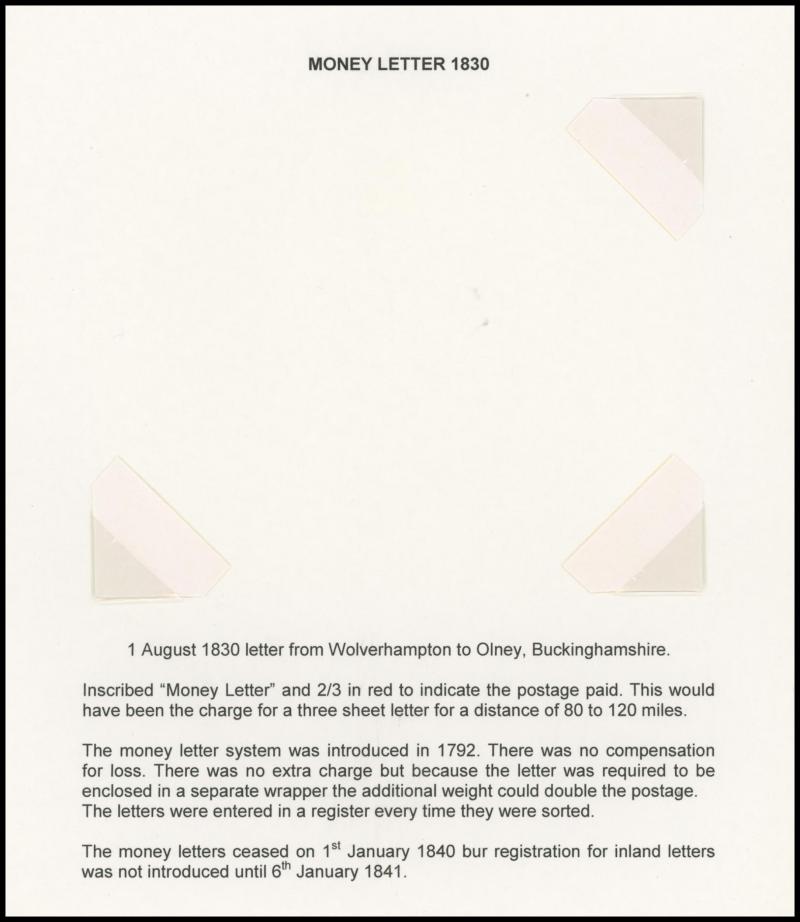Registered Mail 19th Century annotated display from 1830 Wolverhampton to Buckinghamshire endorsed "Money Letter" and 1840 from