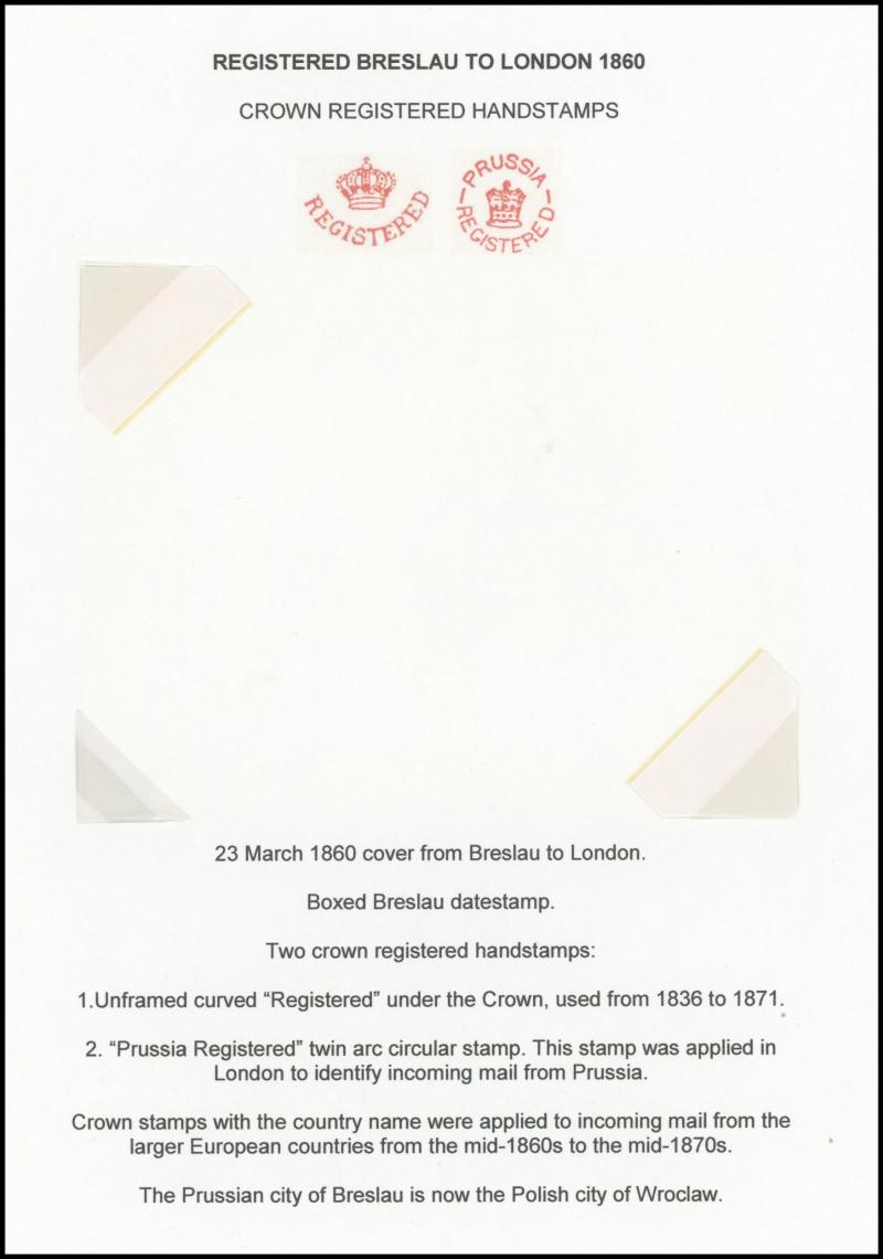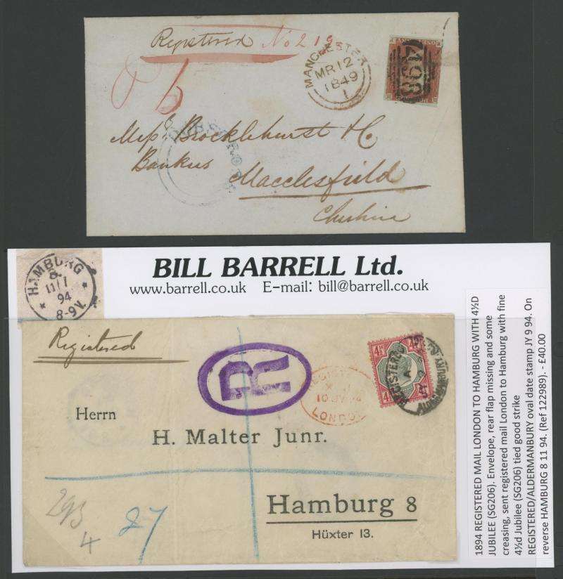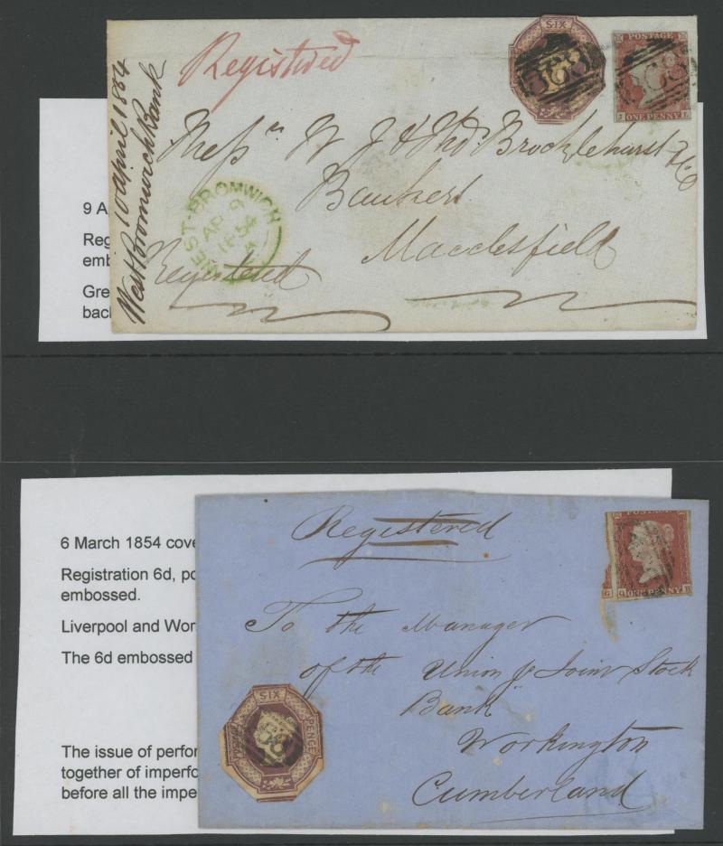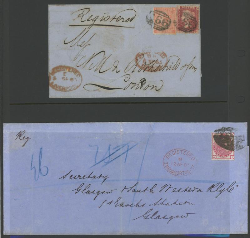 the registration fee paid in cash, 1847 to Scotland endorsed "Registered Letter 1/1 Paid" with London 'Cheapside' cachet in red, 1860 outer from Germany with very fine London 'PRUSSIA/REGISTERED' crowned handstamp, 1861-62 'LOMBARD STREET/REGISTERED