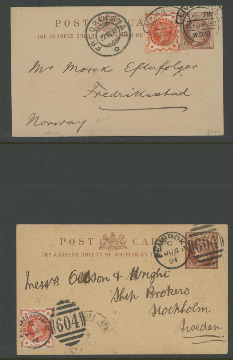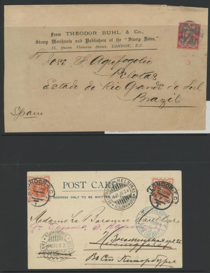 purple/yellow and 4½d green & red for triple rate, 1900 ½d vermilion x2 on 'St Pauls' vignette picture postcard to Finland, and lots more, condition a little variable but most are fine to very fine.