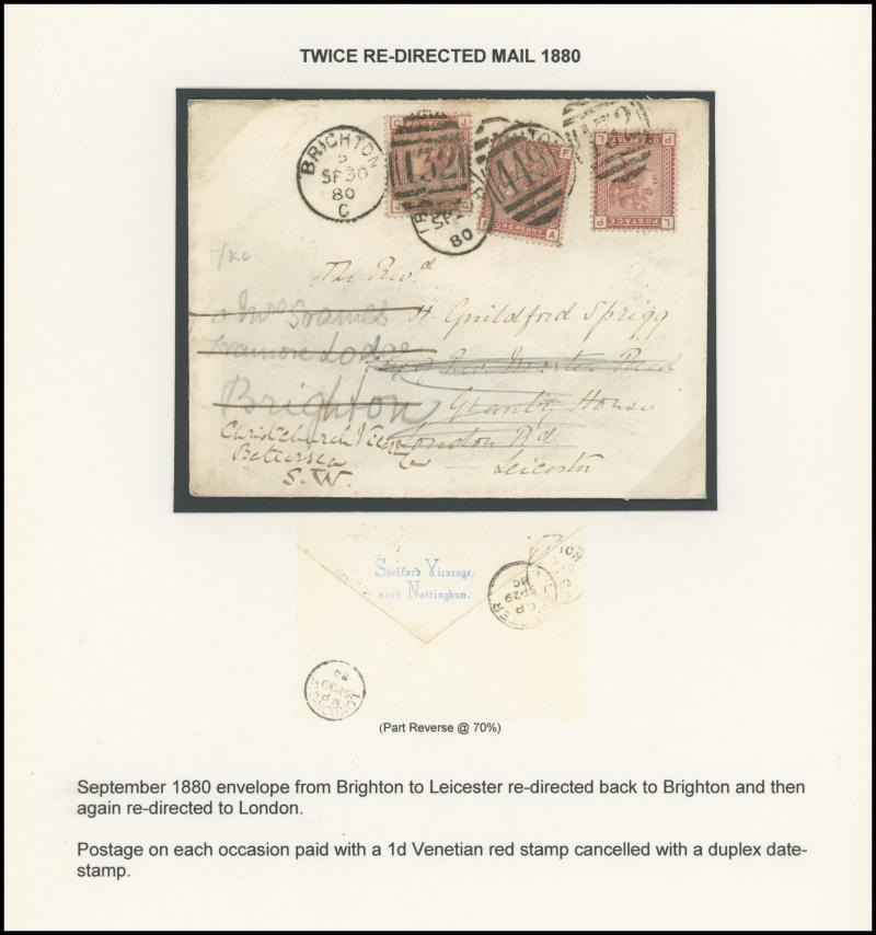 QV Surface-Printed Frankings assembly with a range of inland rates including 1880 Brighton to Leicester, re-directed back to