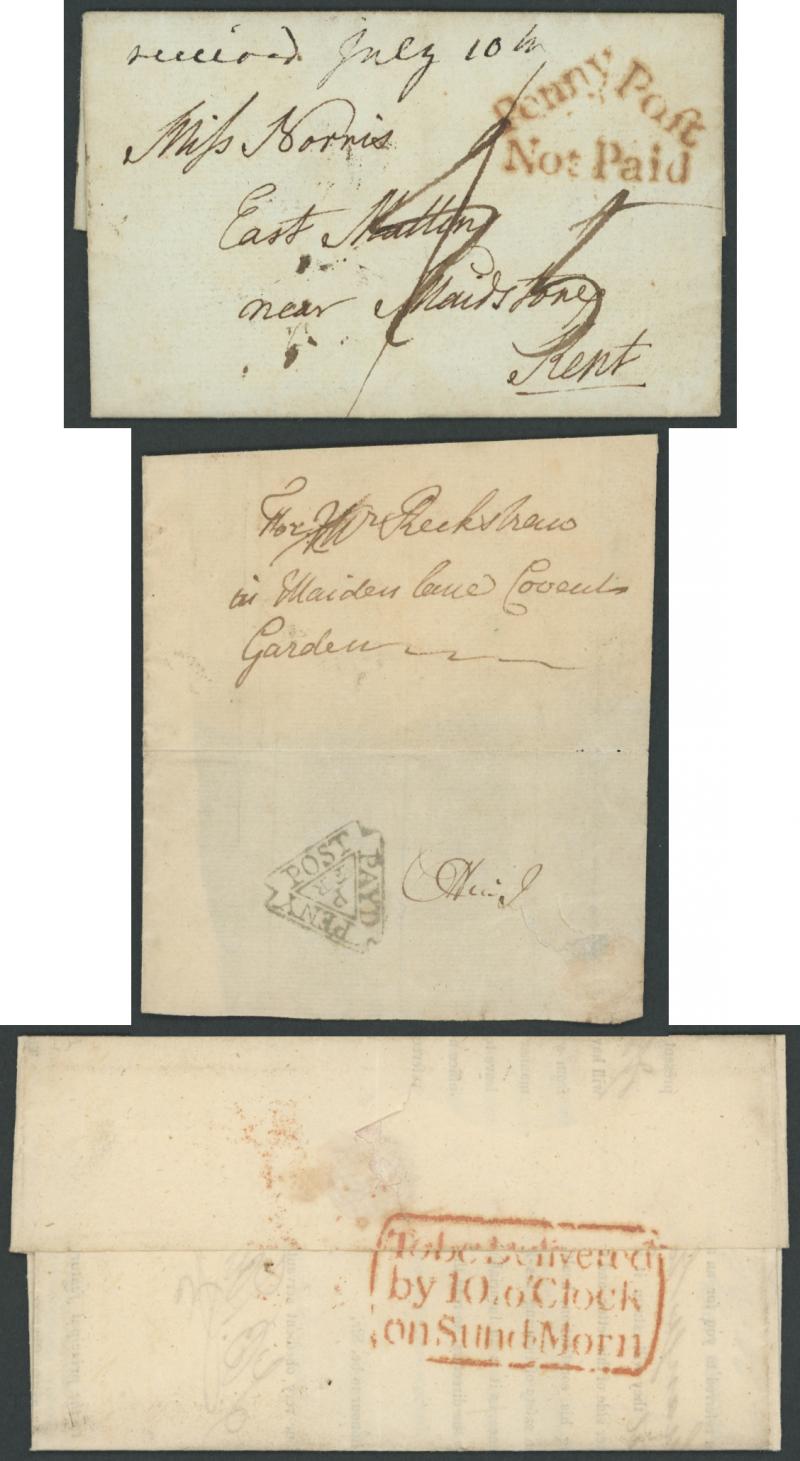 Tooley St, Tottenham Ct Rd, Provincial Receiving Offices noted 'Wrentham/Penny Post', etc, lots of other postmark interest, condition a little variable but most are fine to very fine.