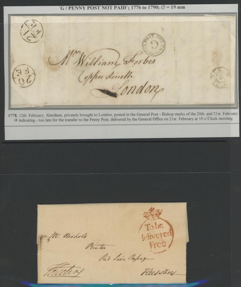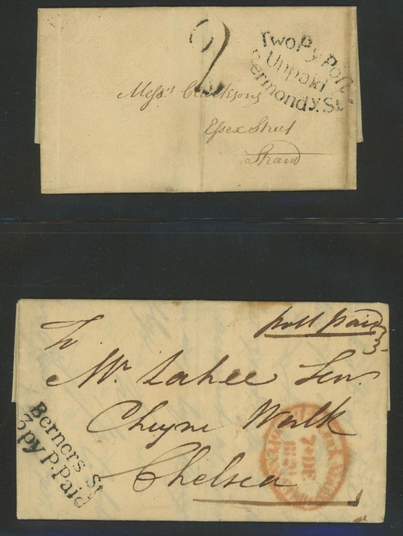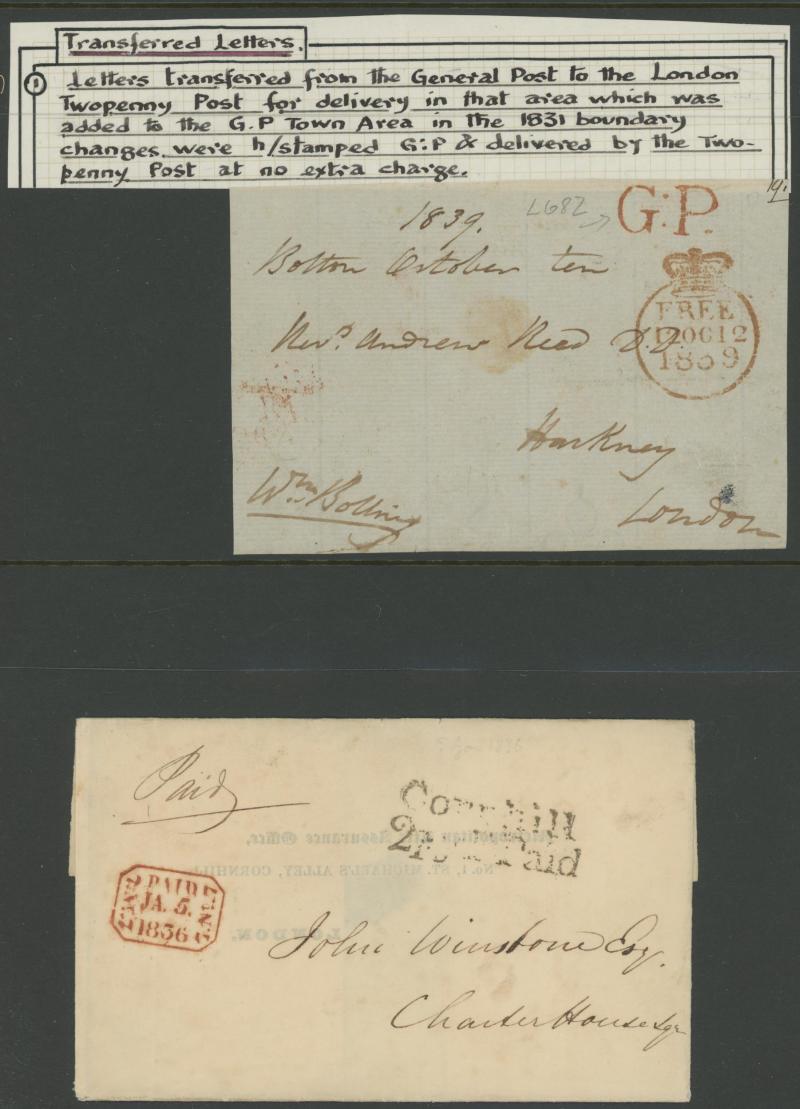 London Receiving Houses including Bishopsgate St Within, Brixton, Broadway Westminster, Cornhill, Grays-Inn, Gt Marylebone Rd, Holborn, King William St, Limehouse, Lisson Grove, Islington Buck Rd, Moorgate St (with 1d tied Maltese Cross cancel),