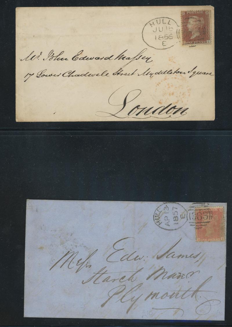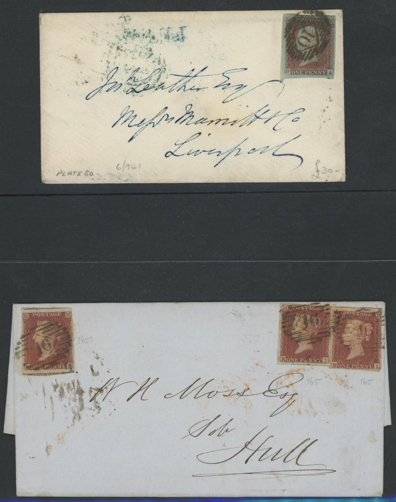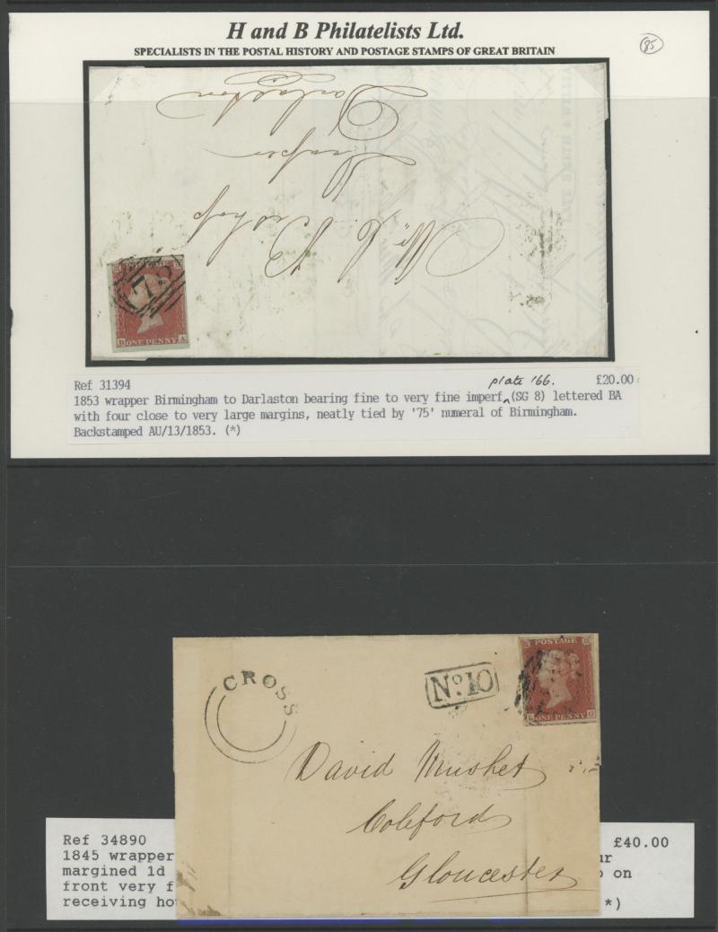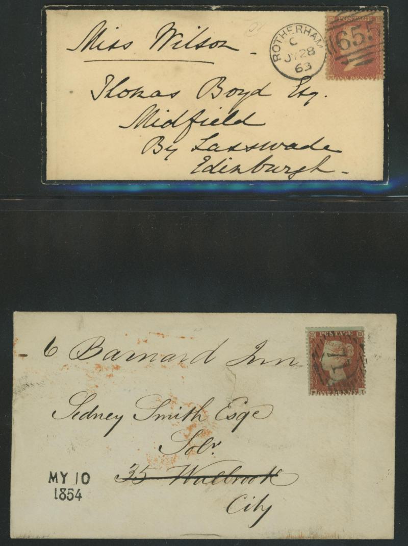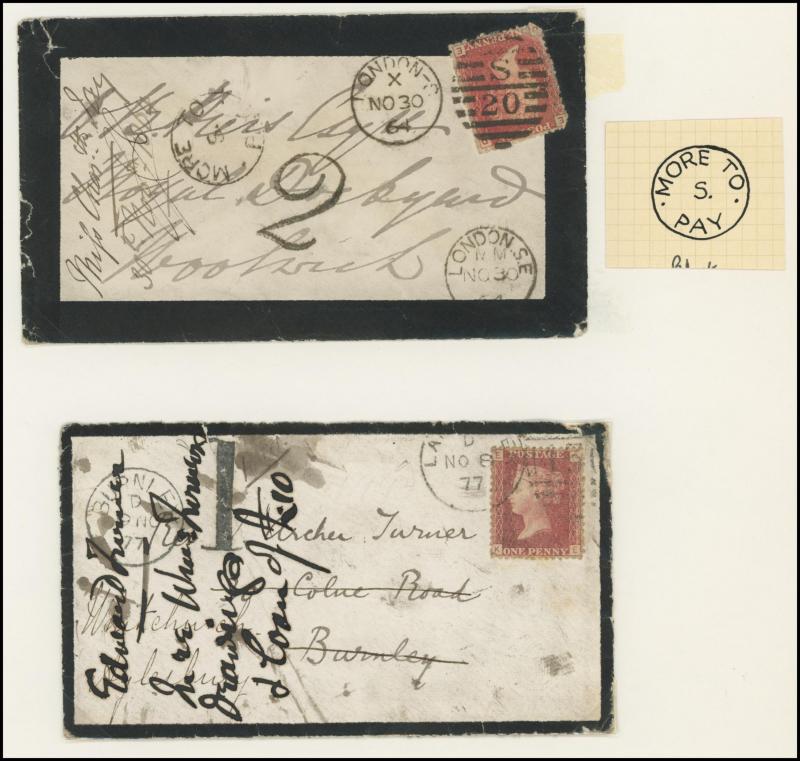 Burton endorsed "Paid 1d extra/Pr Loose Bag", etc, etc, some pairs & multiple frankings, lots of mourning envelopes, a few annotated minor varieties and no doubt others to be found, condition of both the stamps & covers quite variable with some file