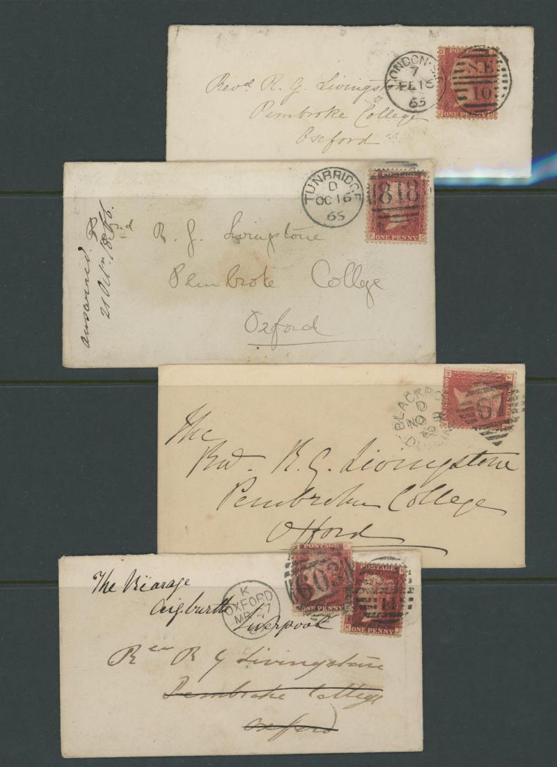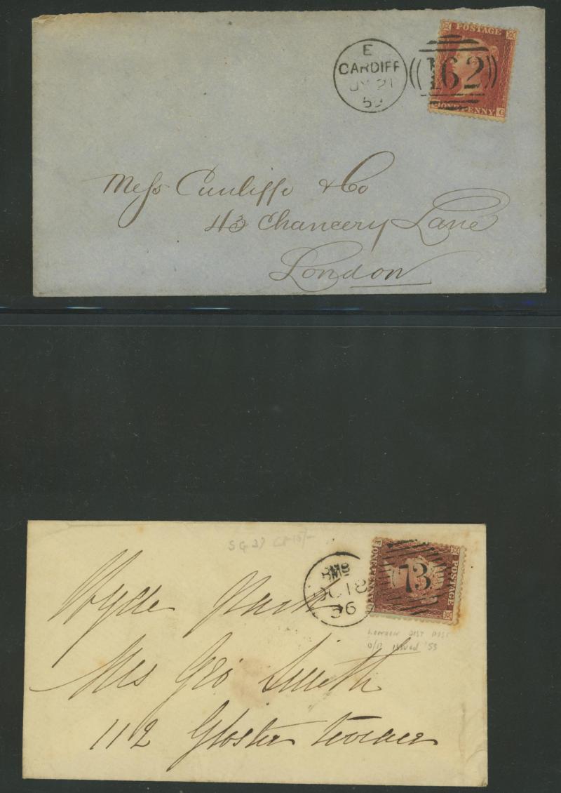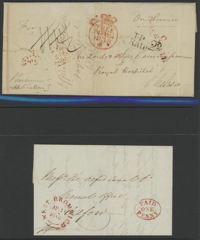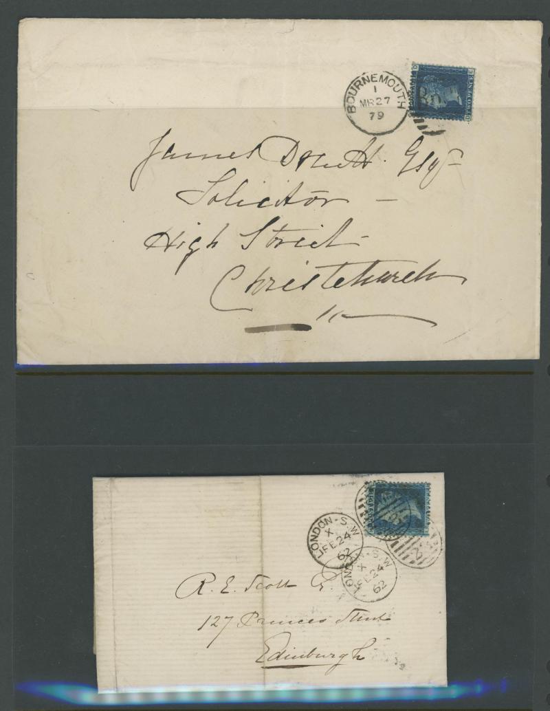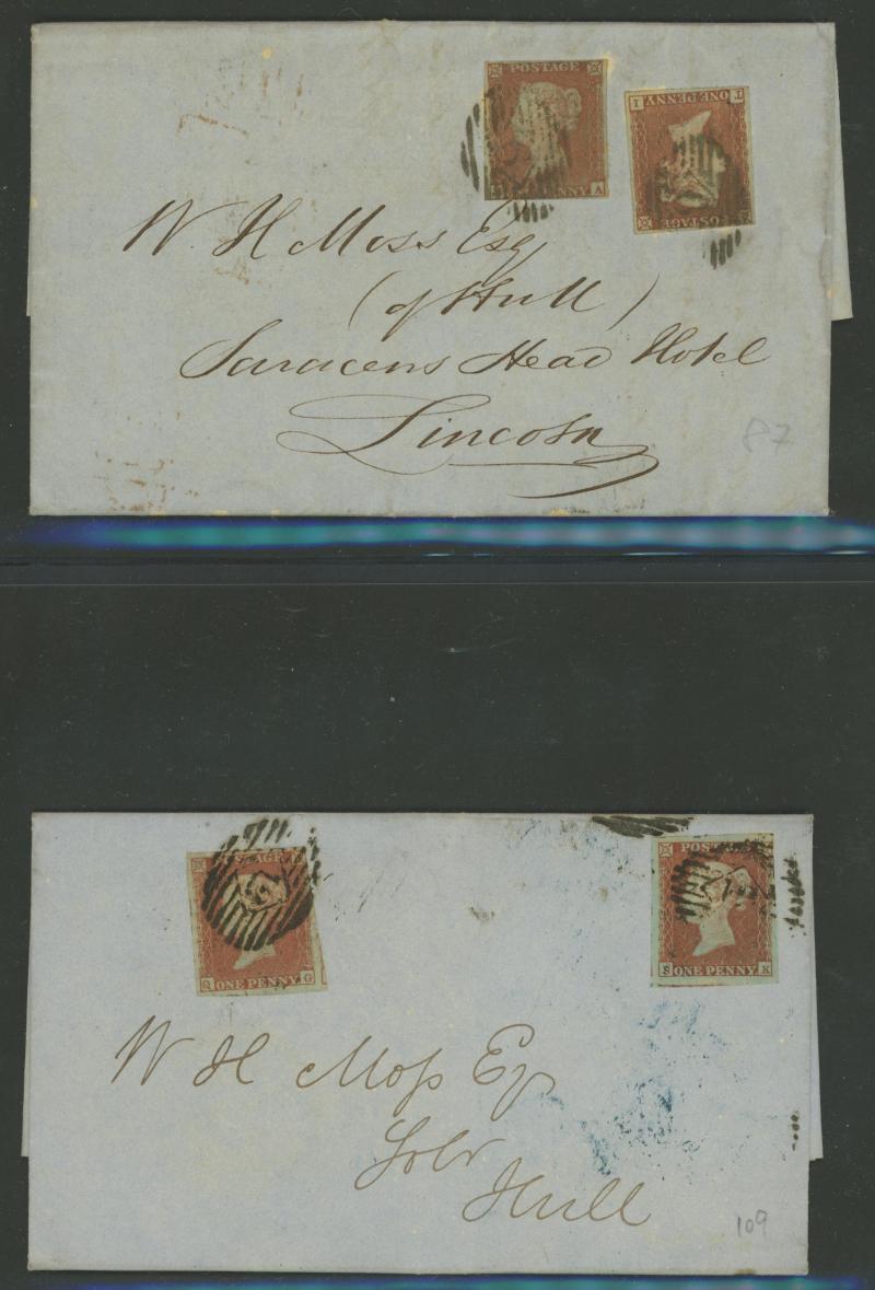 Burton endorsed "Paid 1d extra/Pr Loose Bag", etc, etc, some pairs & multiple frankings, lots of mourning envelopes, a few annotated minor varieties and no doubt others to be found, condition of both the stamps & covers quite variable with some file