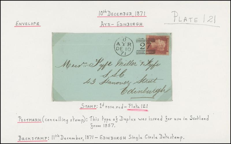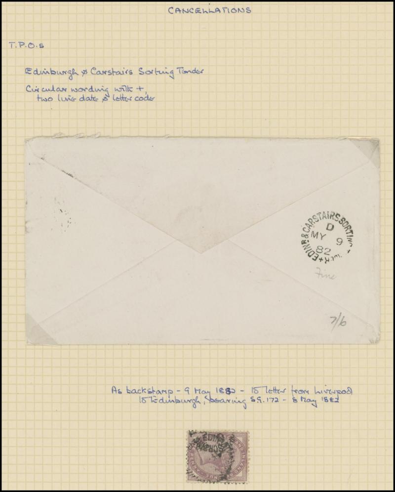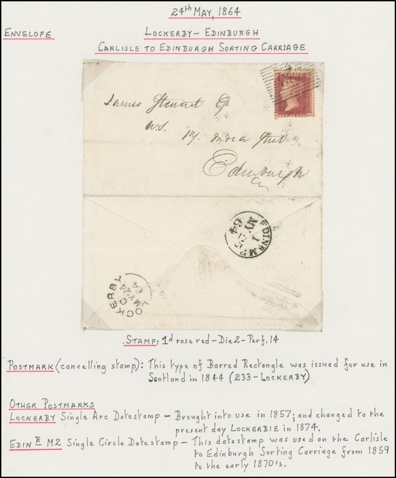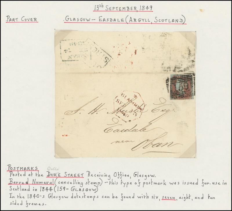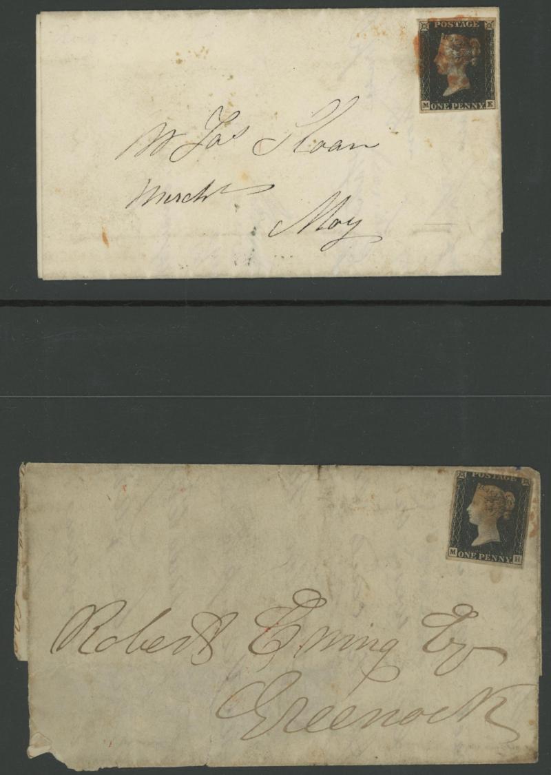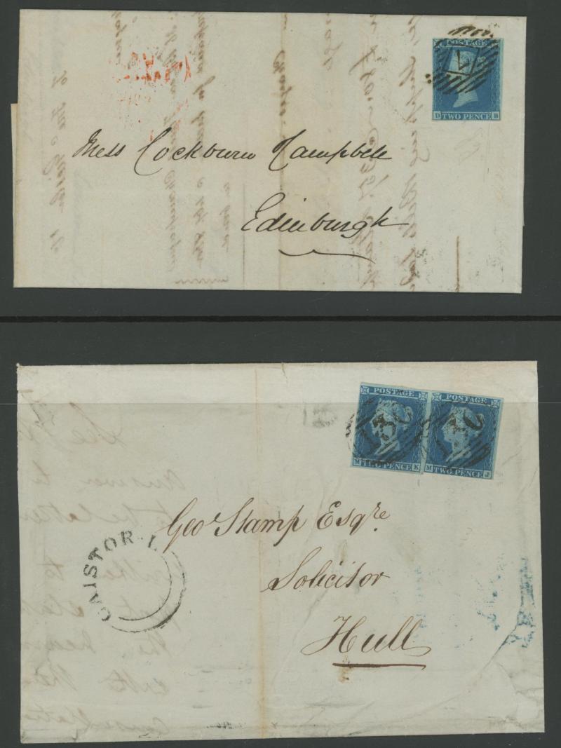 (very fine backstamp), 1840 (Nov 16) with Penny Black (3 margins), light Maltese Cross in red of Edinburgh, then various Stars and Letters including superb Irish '193' of 'KELSO', Numeral '496' of 'KELSO' (backstamp in green), 'GUERNSEY' duplex