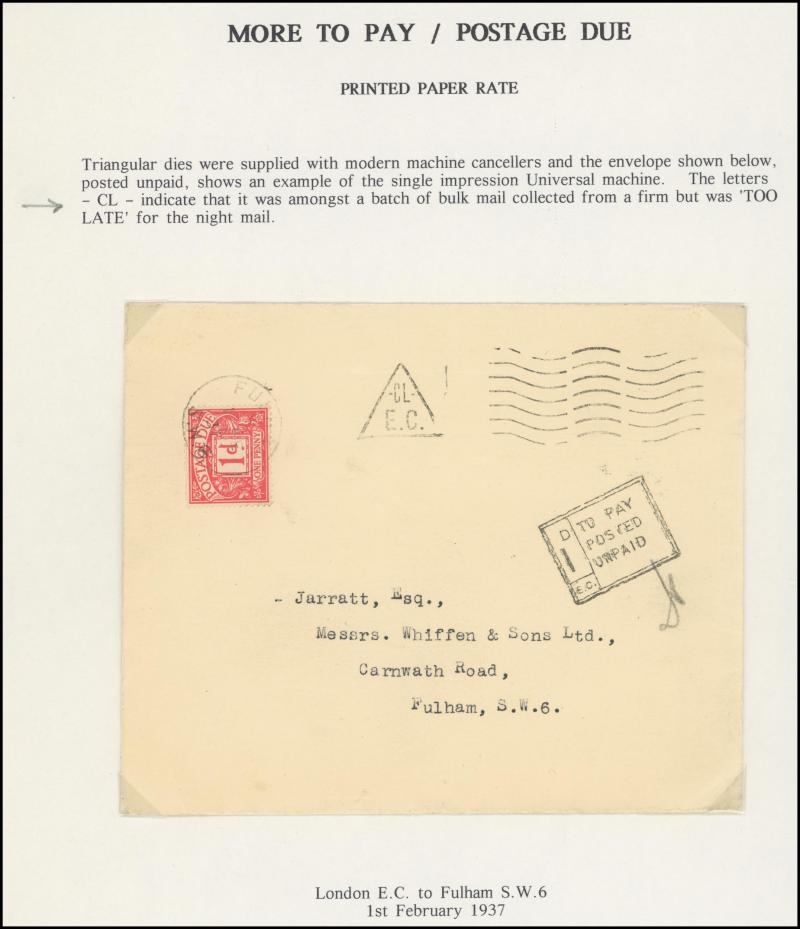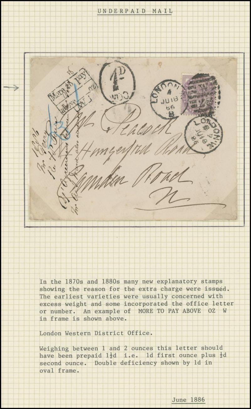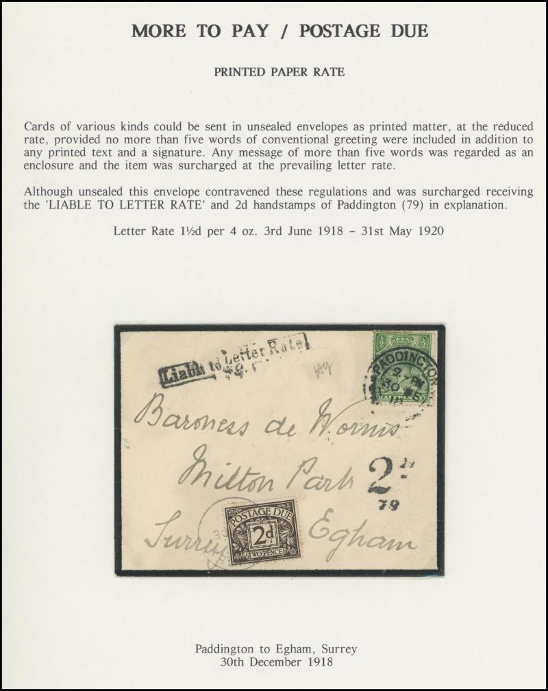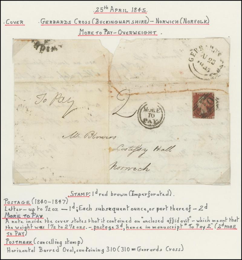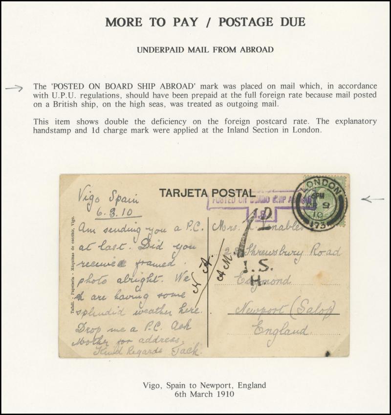Taxed Mail 19th Century group many on annotated display pages from 1838 to London with 'MORE/TO/PAY' double-ring cachet, 1854