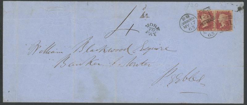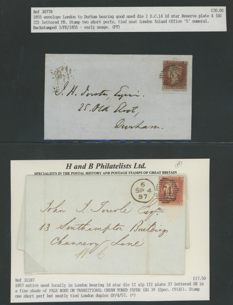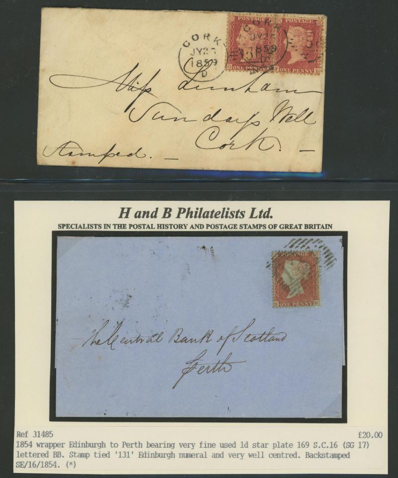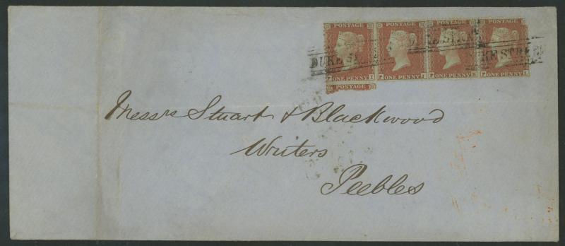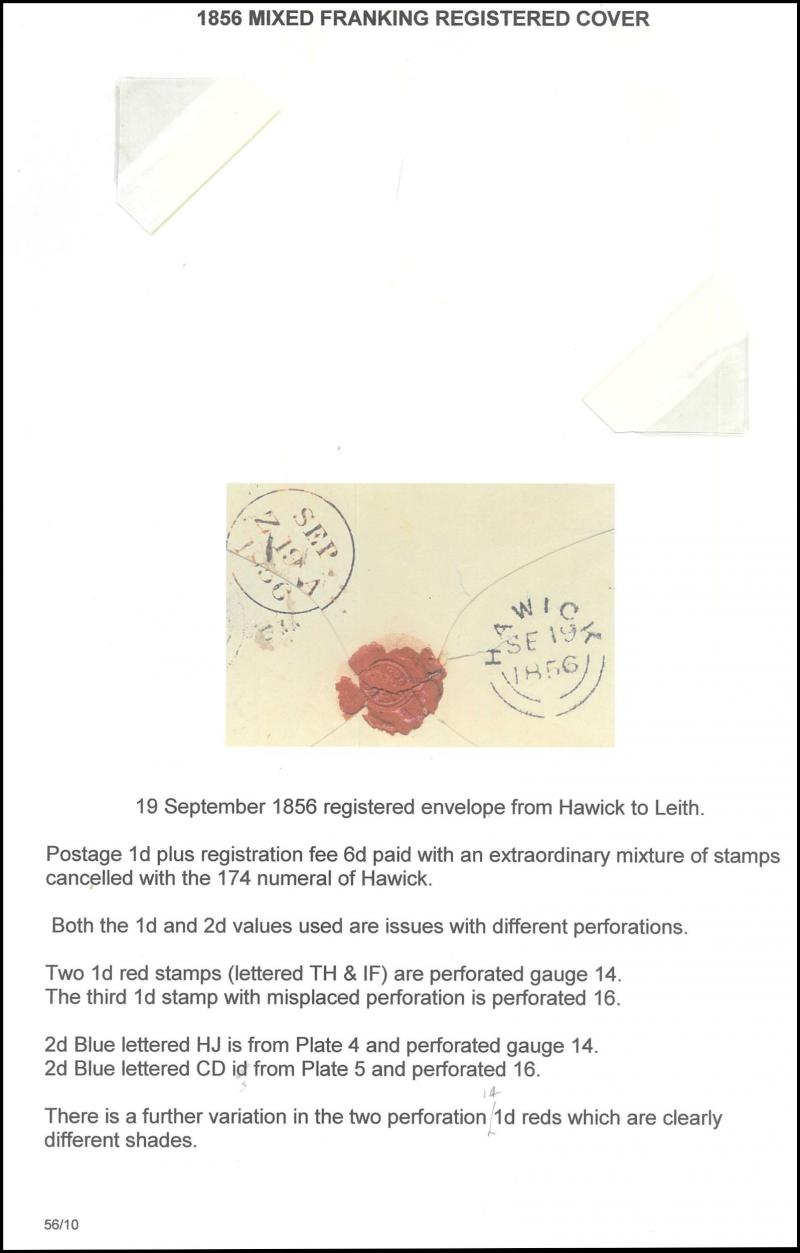 QV Line-Engraved Stars Perforated frankings accumulation including 1856 registered to Leith with unusual mixed perf franking of