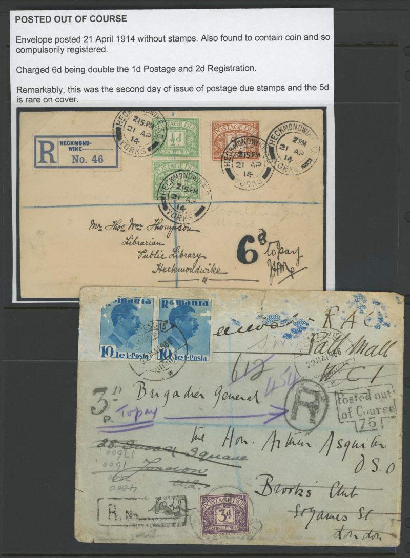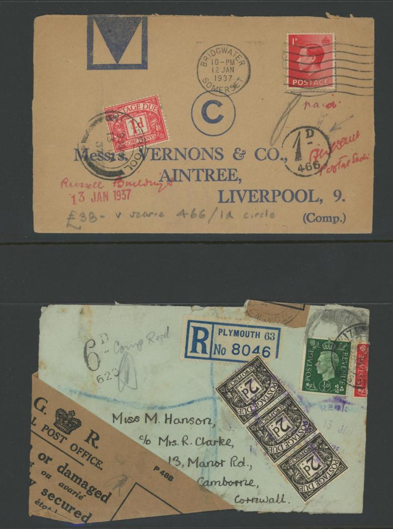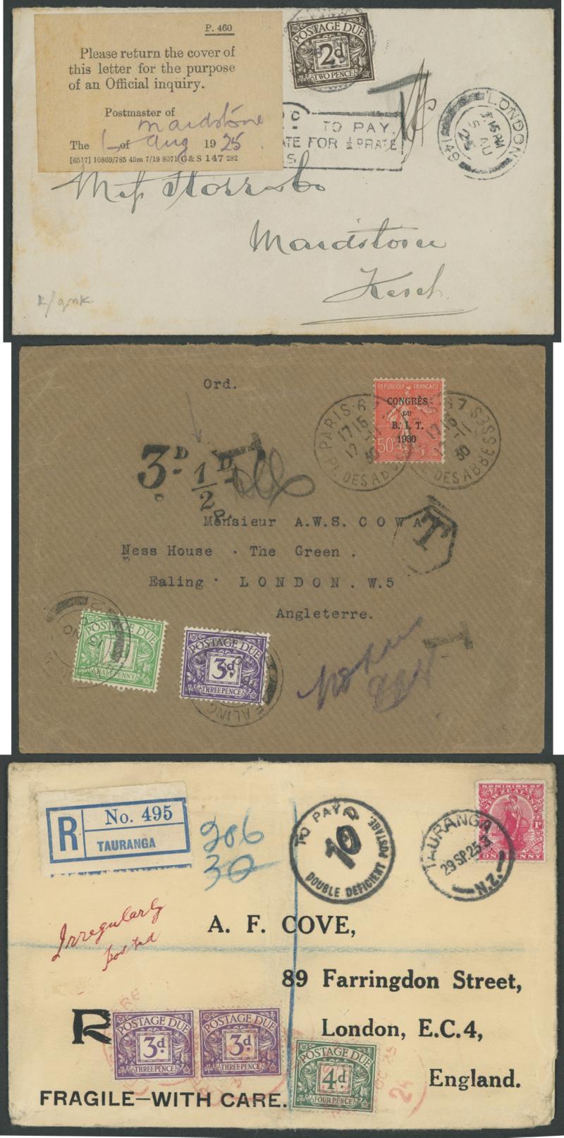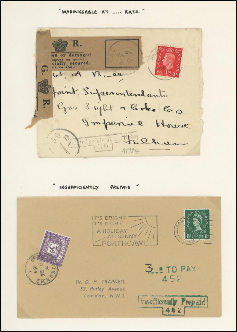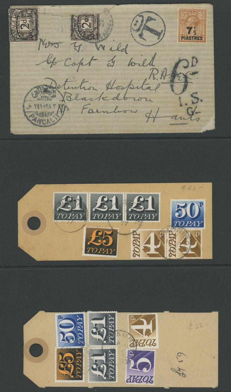 to the 1970s many with British Postage Dues affixed, includes unpaid & underpaid items, invalid frankings & incorrectly posted, returned & refused items, noted 1905 picture postcard with 'Exceeds limits of size' cachet, 1910 postcard franked at local