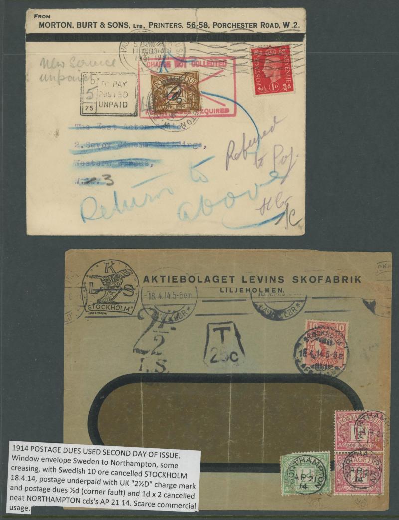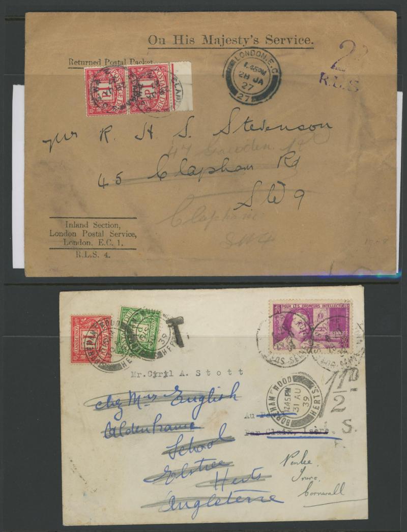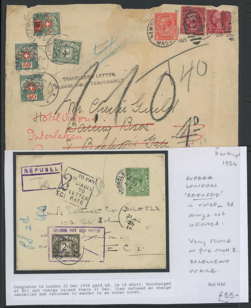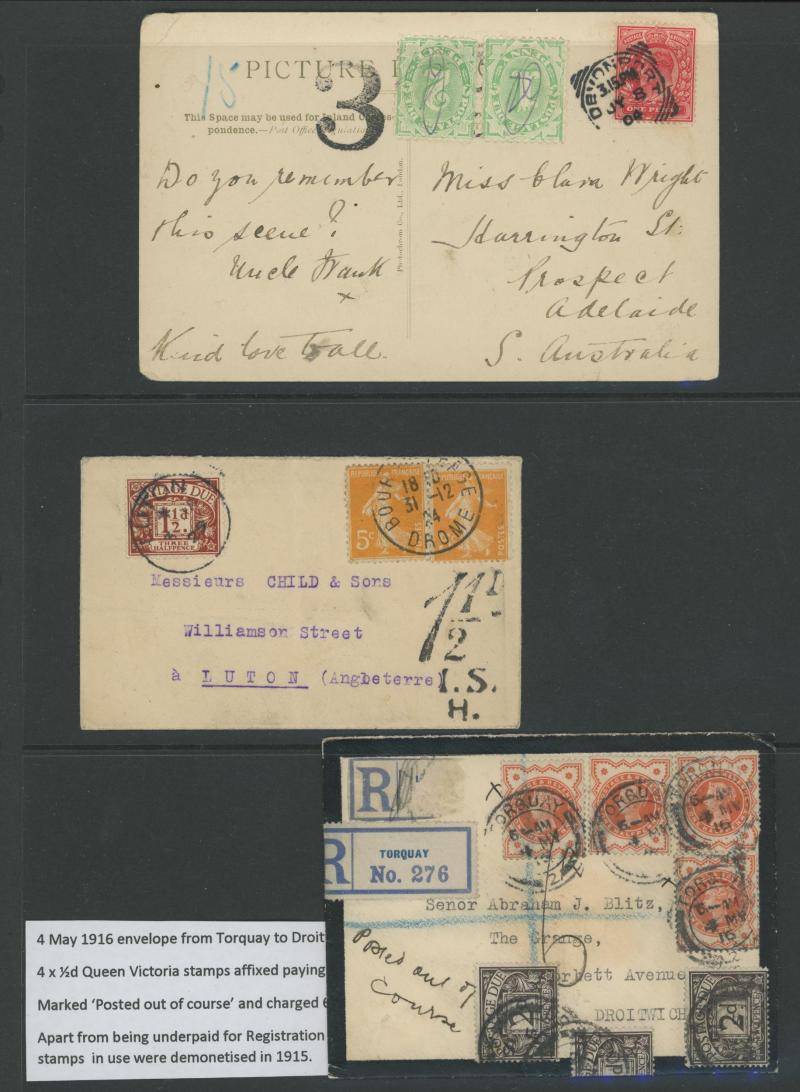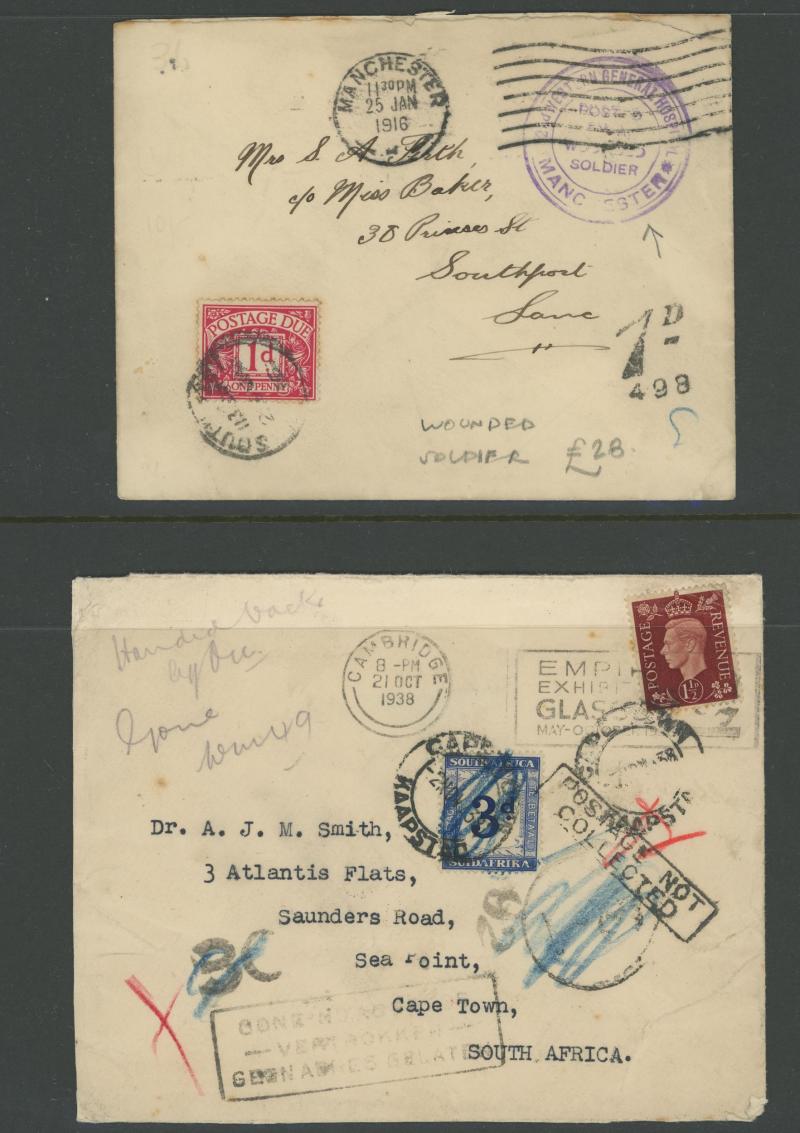to the 1970s many with British Postage Dues affixed, includes unpaid & underpaid items, invalid frankings & incorrectly posted, returned & refused items, noted 1905 picture postcard with 'Exceeds limits of size' cachet, 1910 postcard franked at local