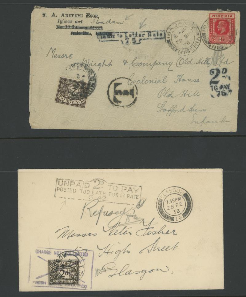 invalid British stamps), Austria, France (one 1930 with 50c 'CONGRES/DU/B.I.T.' overprint), Hong Kong, Iraq, Italy, New Zealand (irregularly posted registered item), Nigeria, Senegal, South Africa, Sweden, Switzerland, Turkey (with invalid British