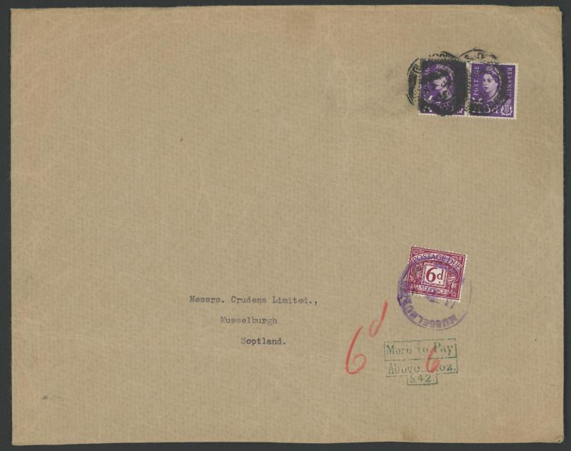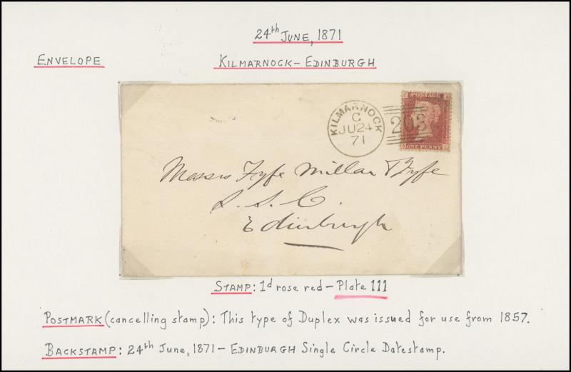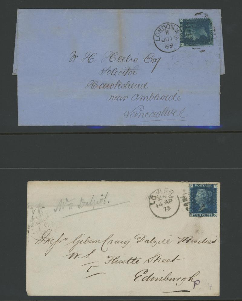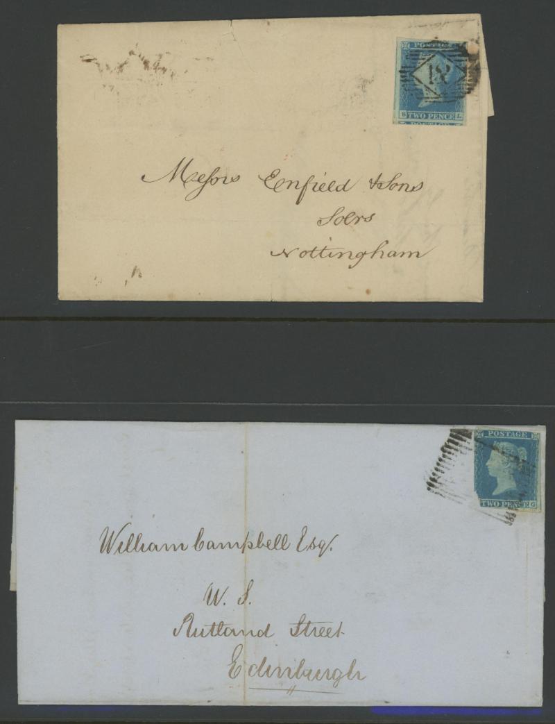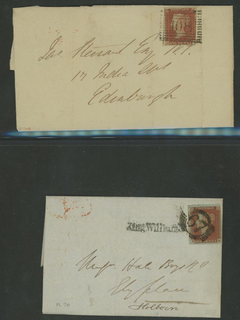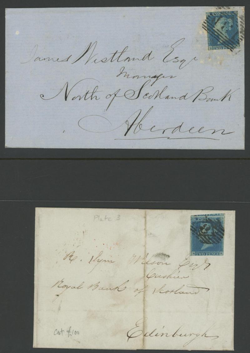 envelopes x19 including a strip of 3 [CD-CF; CE Re-Entry] (slightly cut-into at top) tied by Edinburgh Numeral '131' cancels on entire to Bridge of Earn, vertical pair [KA-LA] (slightly cut-into at right) on entire from Cupar to Kirkaldy with 'TOO