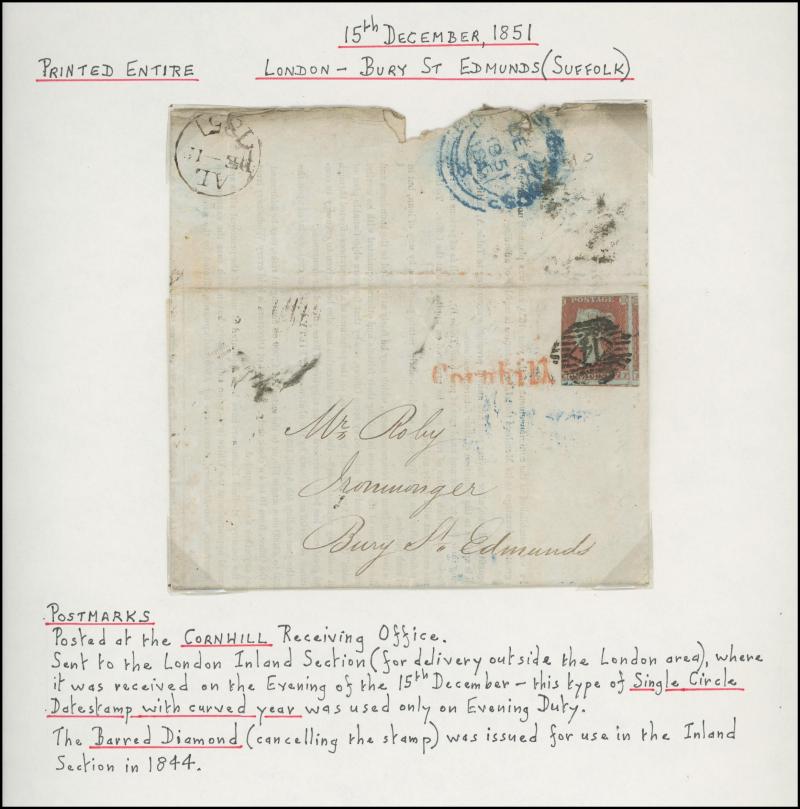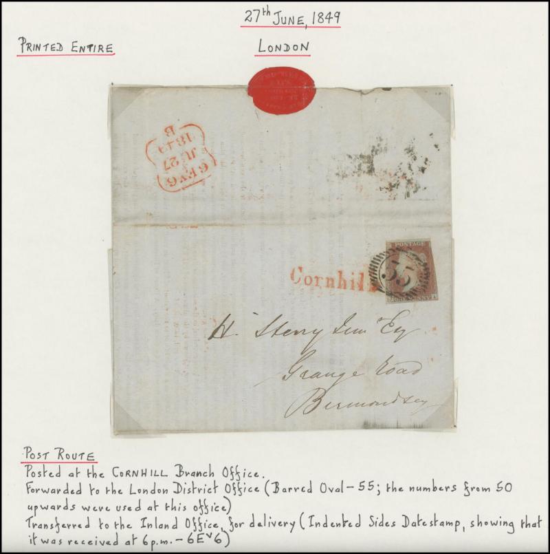 numerals & 'ties', including a good representation from Scotland and a few from Ireland, London District markings noted 'Cornhill' in red, 'Hampstead, 'King William St' & 'Moorgate St', also other markings such as 'TOO LATE', 1850 Middleham to West
