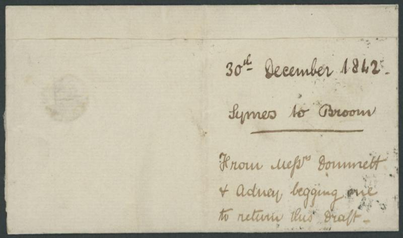 applied for items posted between 7pm & 7.30pm to catch that evening's mail trains. Graham Hayward states that "after March 1842 late fees were required to be paid by stamps, but an exception was made for the late window of the Chief Office at St