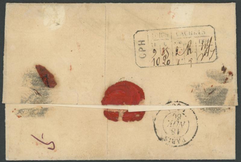 fees on mail to France were based on weight). Sold at a London auction in 2003 for £288. (Image1) (Image2)