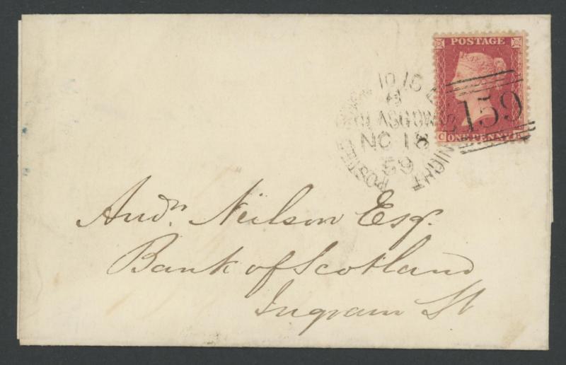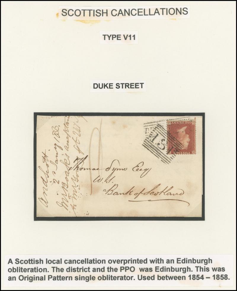 of this marking as 1857 to 1859 only (twelve examples known, only some of which are on entire). For the period 1854-1860, Scottish post offices were officially authorised to use their undated name stamps as cancellations.