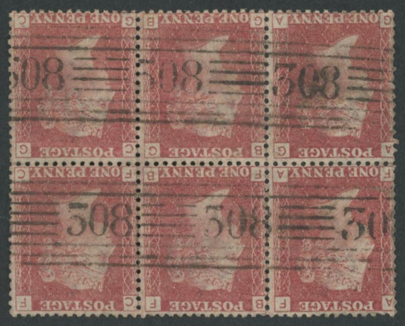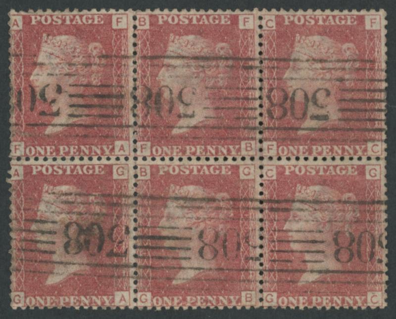 Plate 101 block of 6 (3x2) [FA-FC/GA-GC], the stamps very fine. Only two dated examples of this scarce experimental roller cancel have been recorded. (Image1) (Image2)