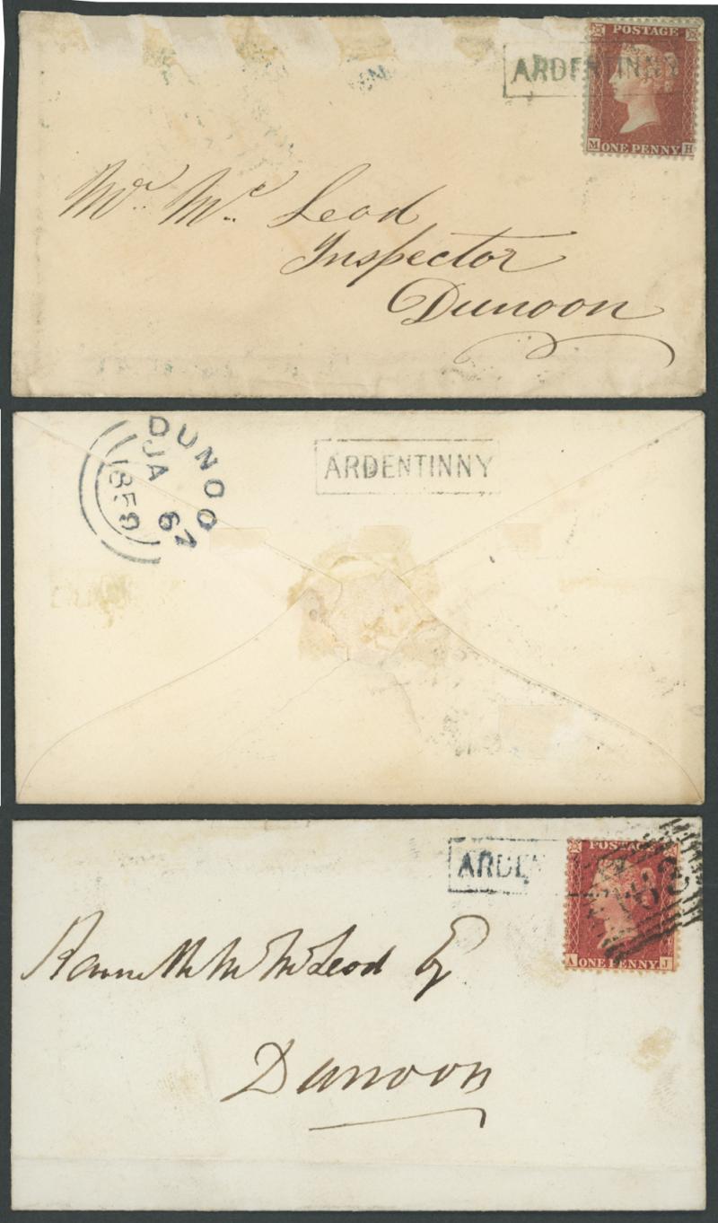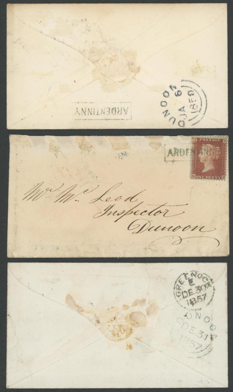 '163' experimental duplex, each with light file folds and/or minor adhesion marks, plus a photograph of the township. Ardentinny in the district of Argyll in Glen Finnart, is located on the western side of Loch Long. Merideth gives the period of use