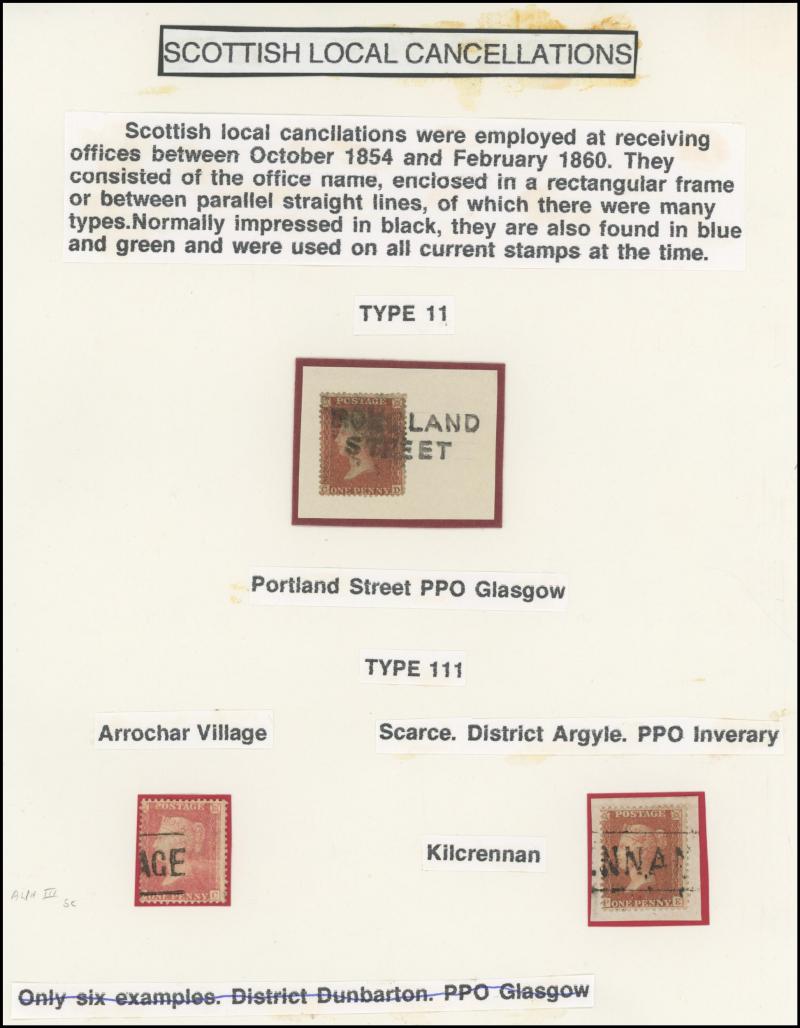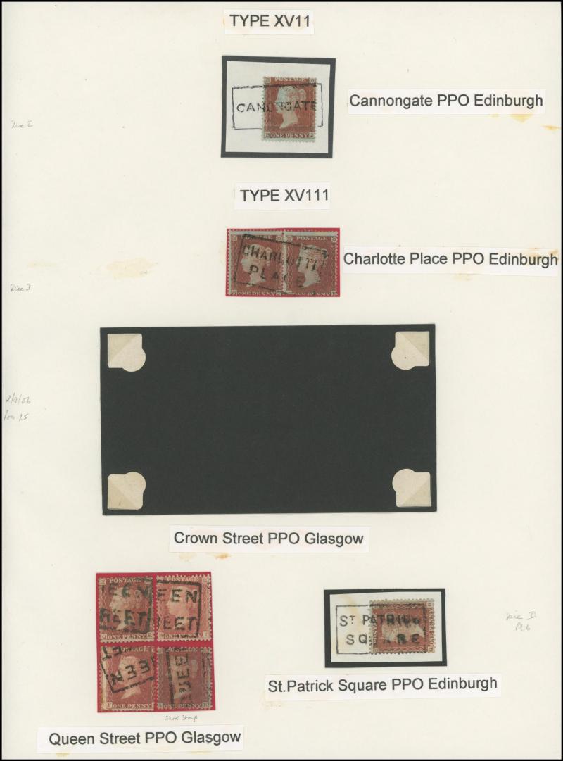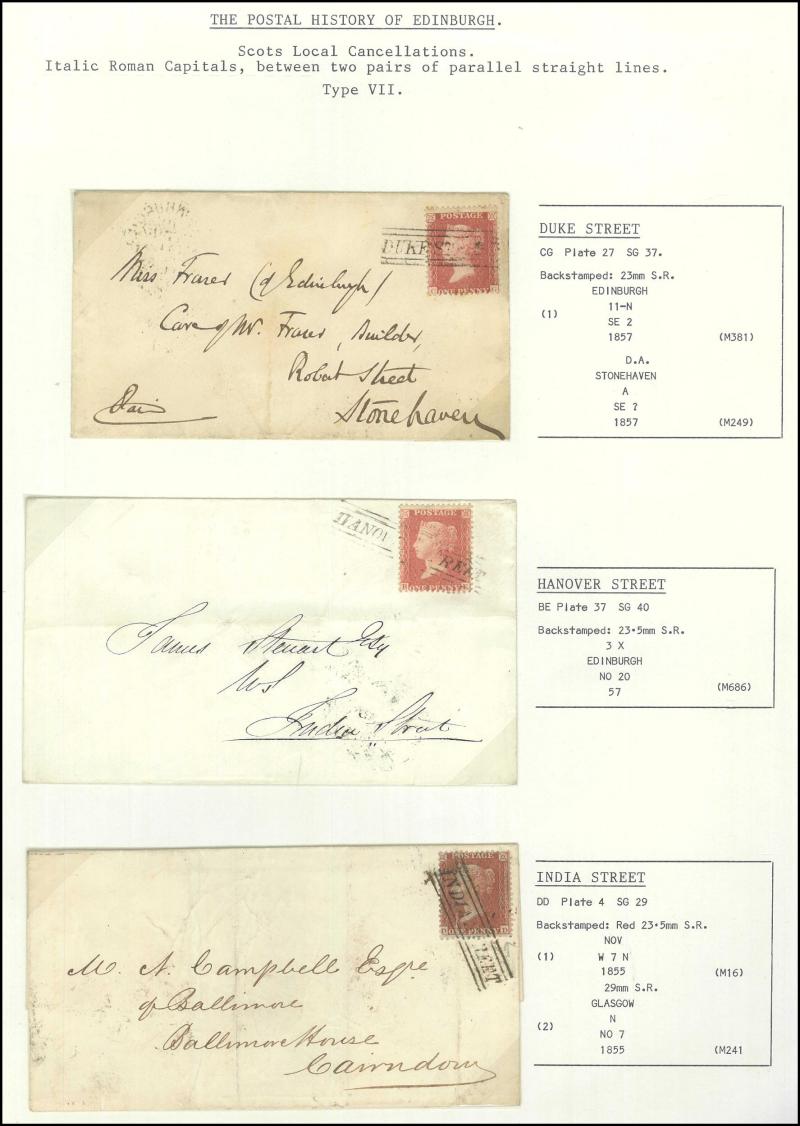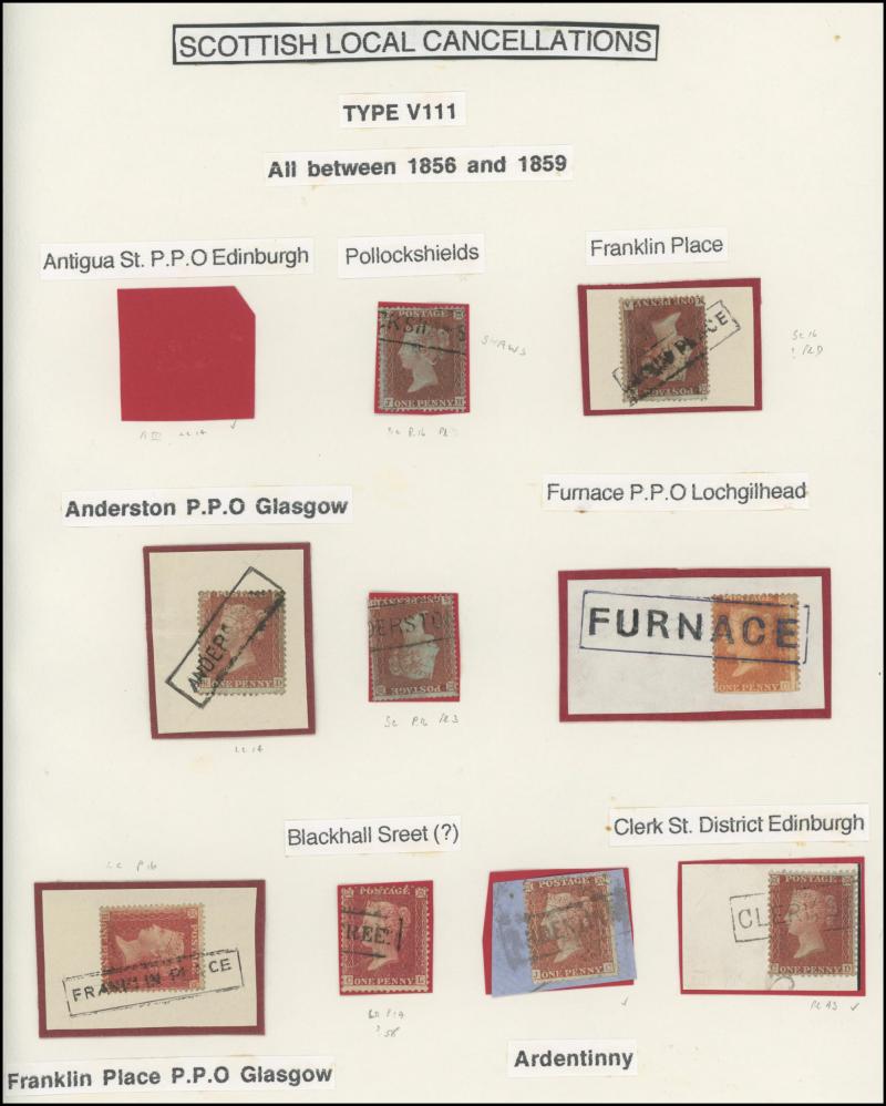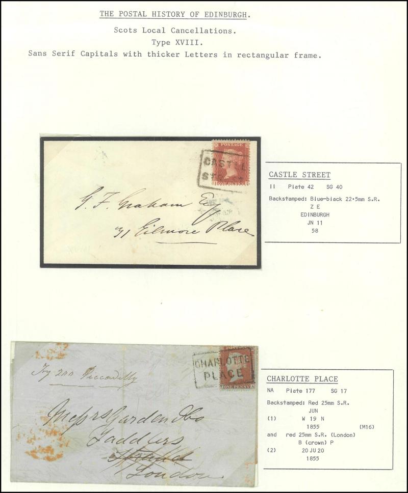 POSTMARKS: Edinburgh Receiving Houses group mostly on annotated display pages with many 'Scots Locals' usages to cancel stamps from