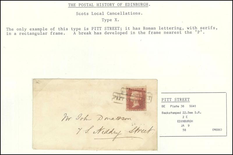 markings of 1866, 1880 & 1883 (less than ten of each of the four types recorded), many with other Edinburgh District RO markings noted 'PITT STREET/EDINR' 1861 unframed datestamp, etc, condition & quality of strikes generally fine to very fine.