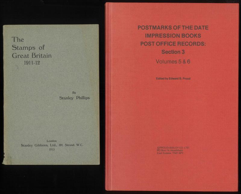 Library remainders including 'Stamps of Great Britain' by Phillips (1913), '... Date Impression Books Vols 2 & 3', 'Herewith my