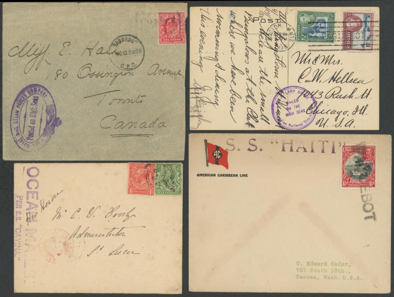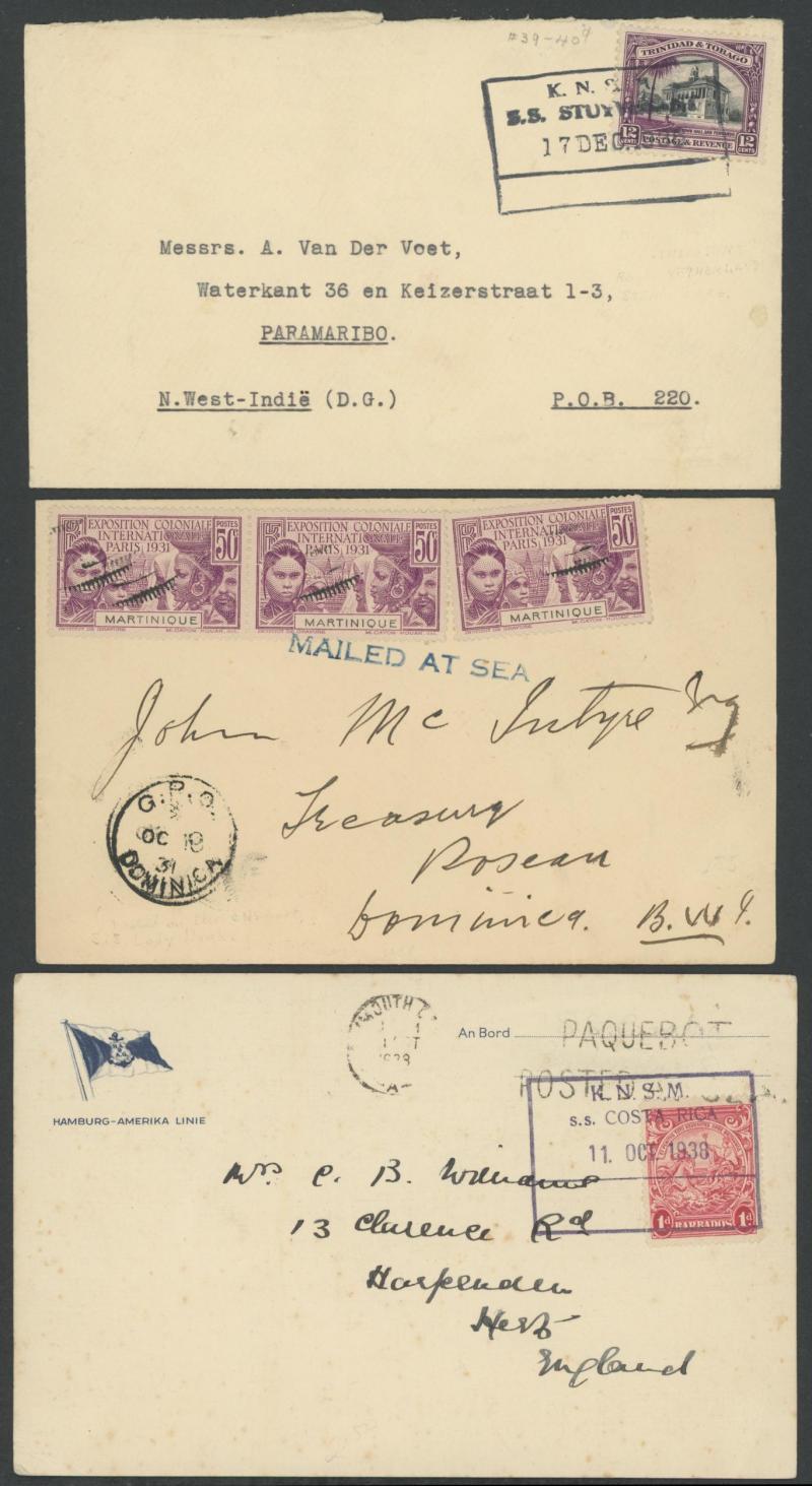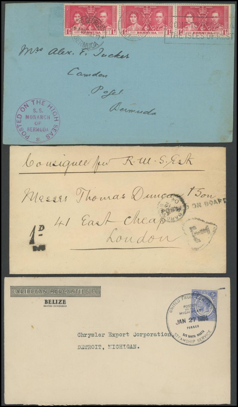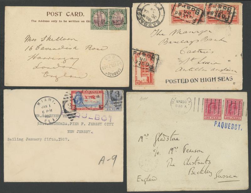 Mostly British West Indies covers with an array of ship-board, 'Posted at Sea' or similar or Paquebot datestamps and instructional