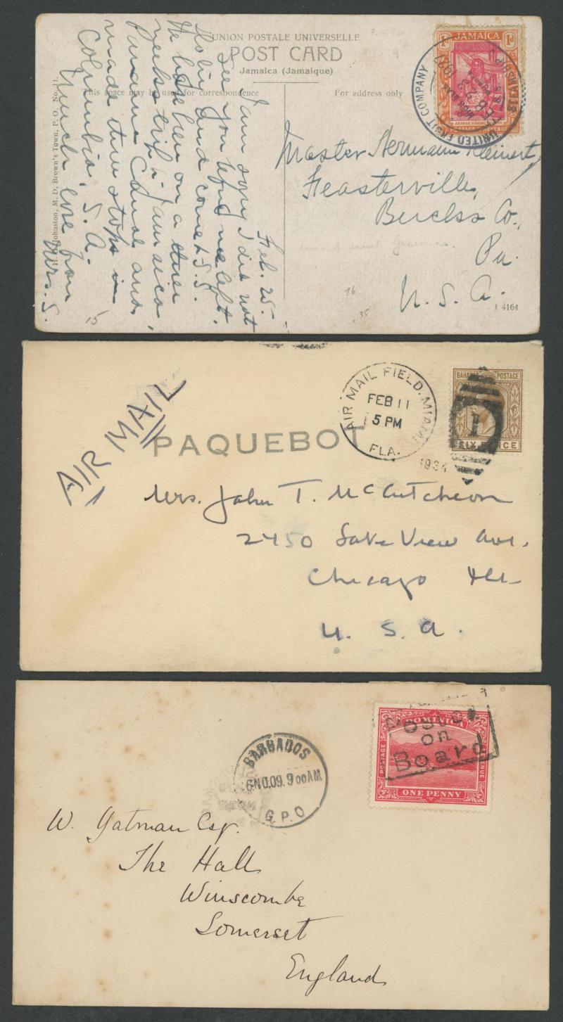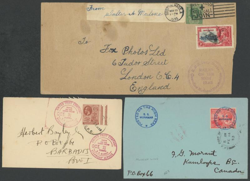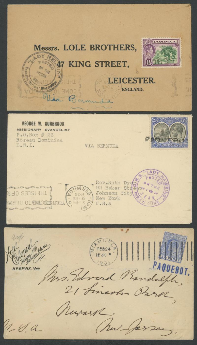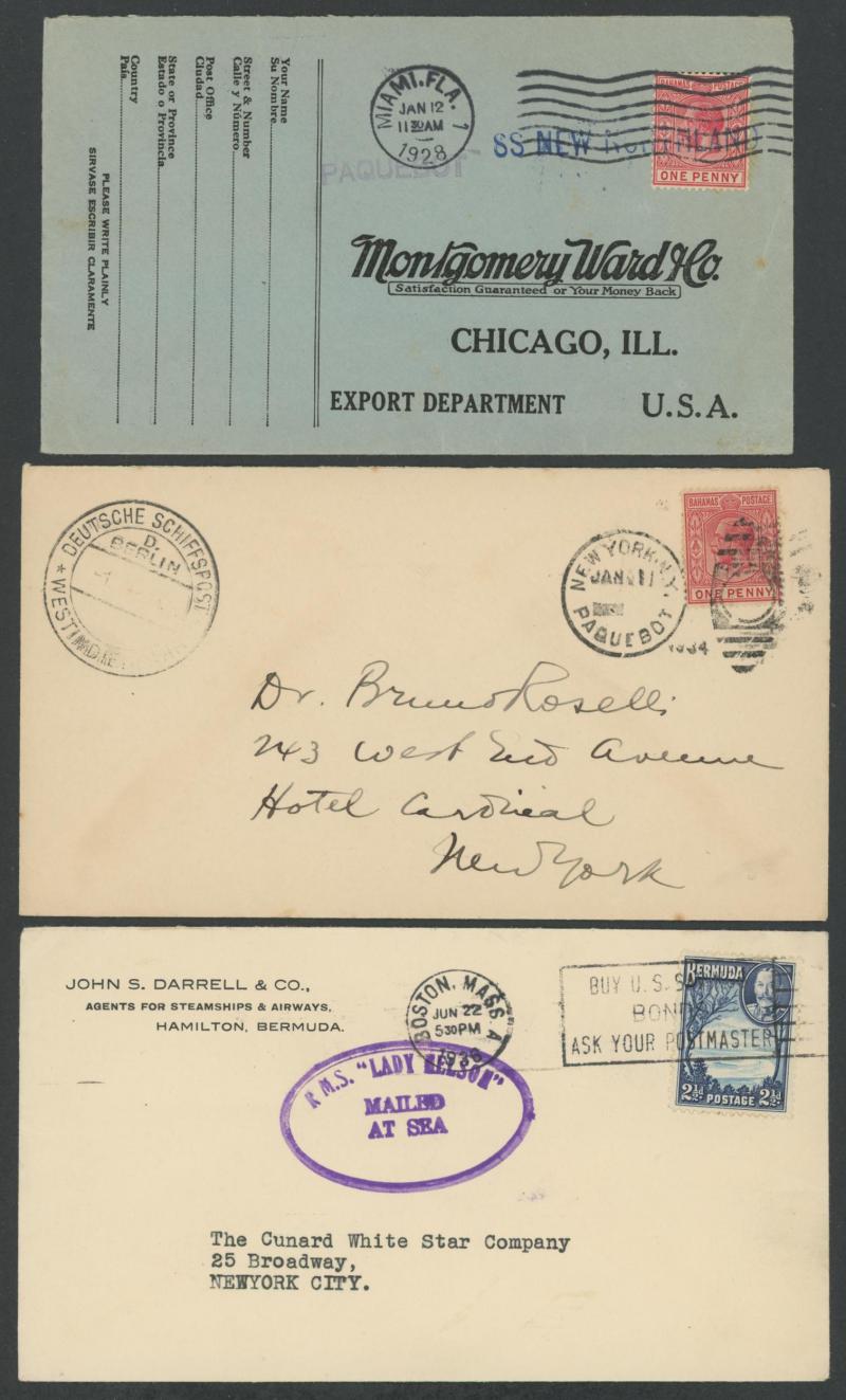 Mostly British West Indies covers with an array of ship-board, 'Posted at Sea' or similar or Paquebot datestamps and instructional