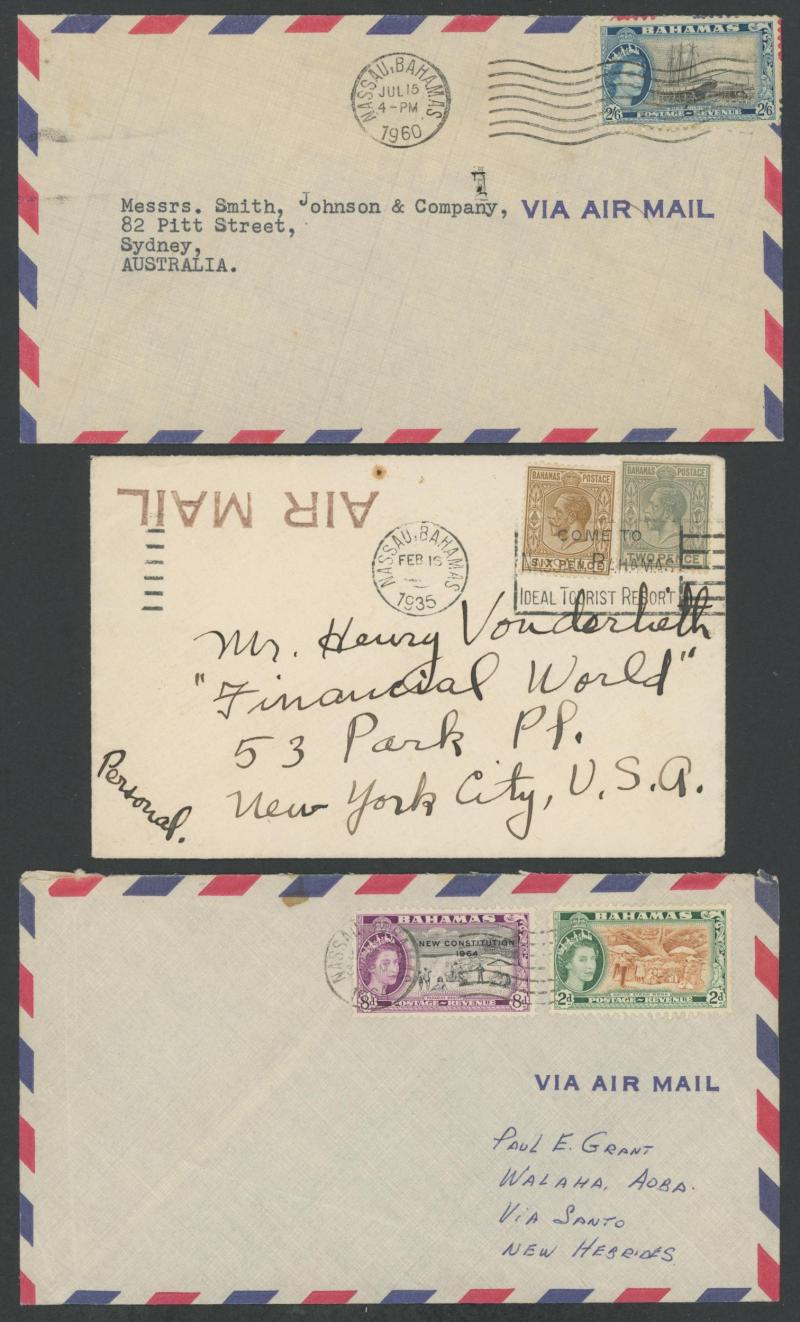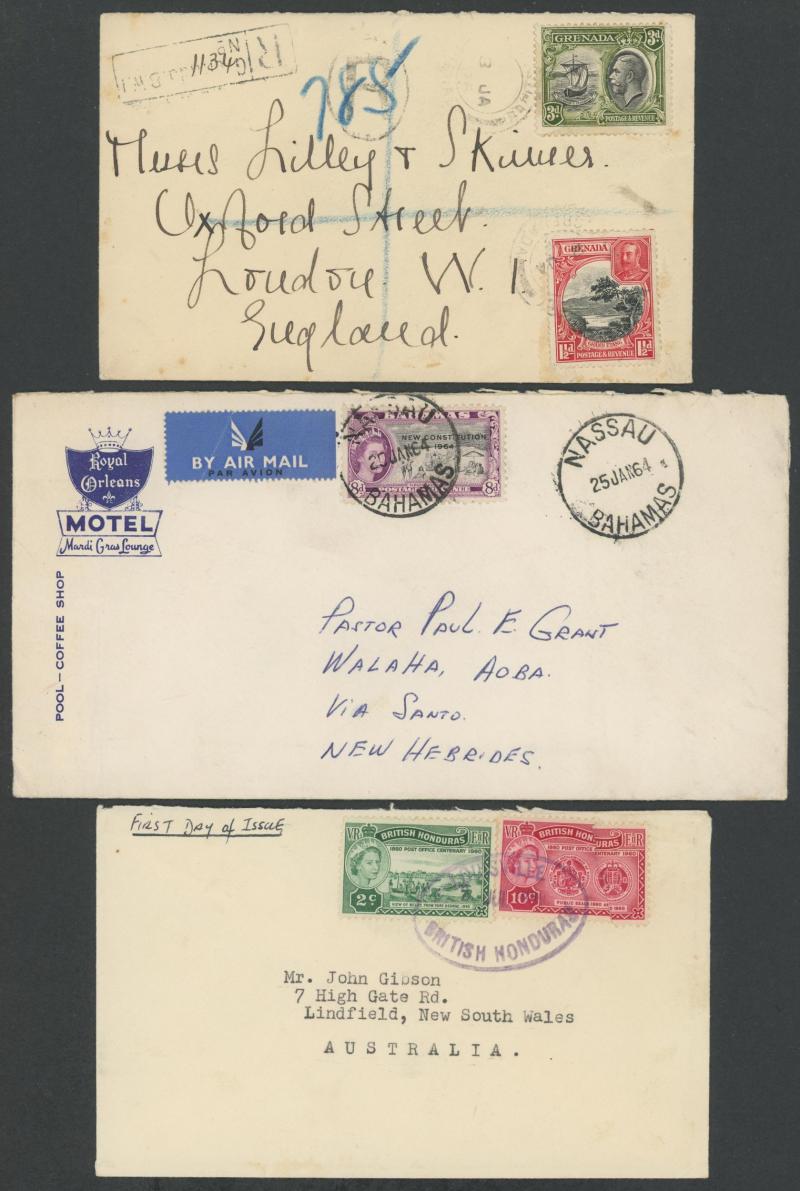 cachet; Bahamas two 1960s covers to New Hebrides; etc, a few from village post offices, condition variable but generally fine to very fine. Ex John Gibson.
